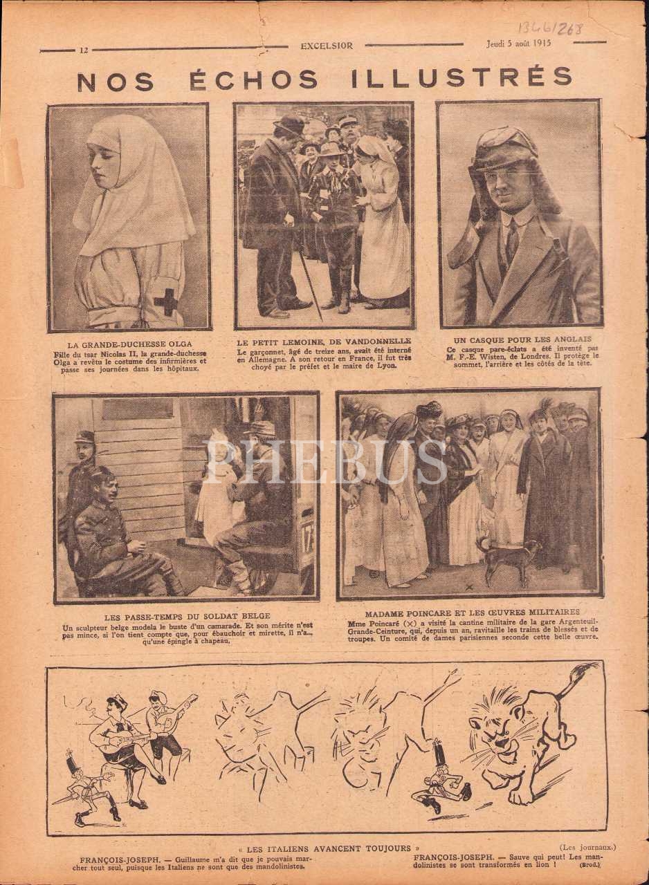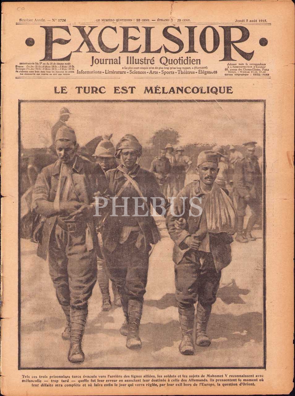 1915 tarihli Fransızca Excelsior gazetesi 1724. sayı, 27x36 cm, kenarları yıpranmış haliyle