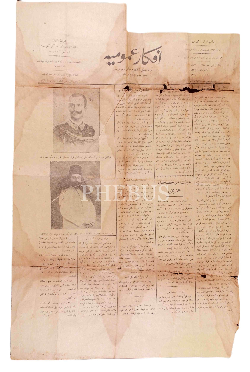 Osmanlıca Efkar-ı Umumiye gazetesi, 9 Haziran 1919, tek sayfa, 40x62 cm, epey yıpranmış haliyle
