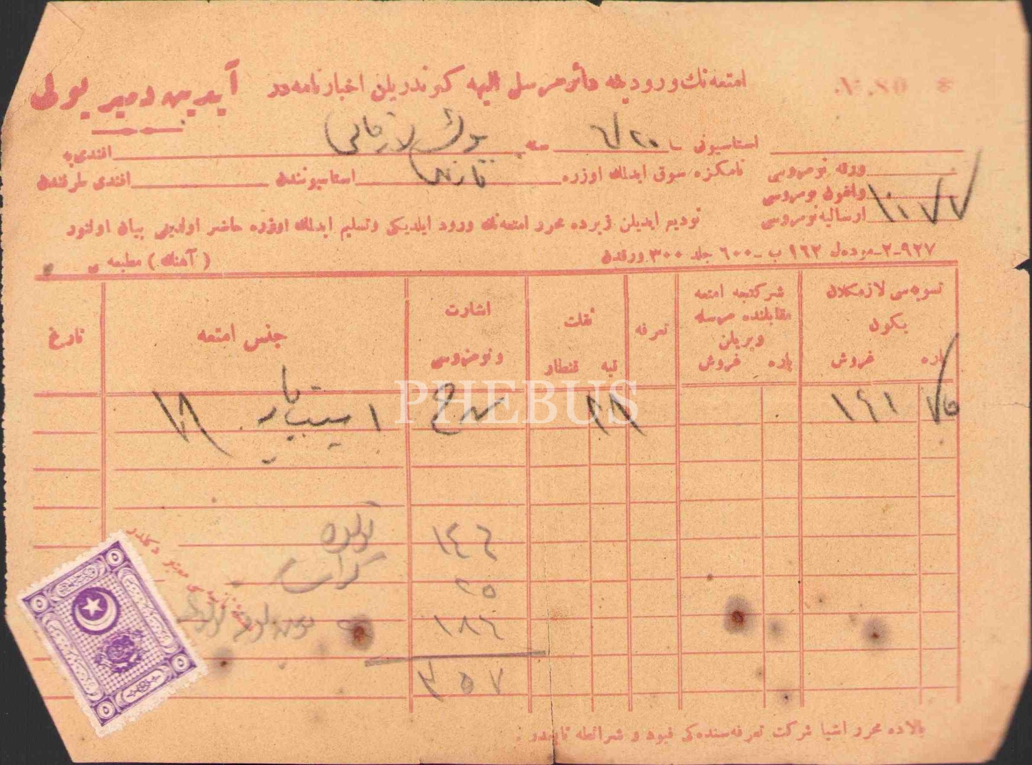 Osmanlıca Aydın Demiryolu antetli ihbarname, 15x20 cm, bir kenarı yırtık haliyle