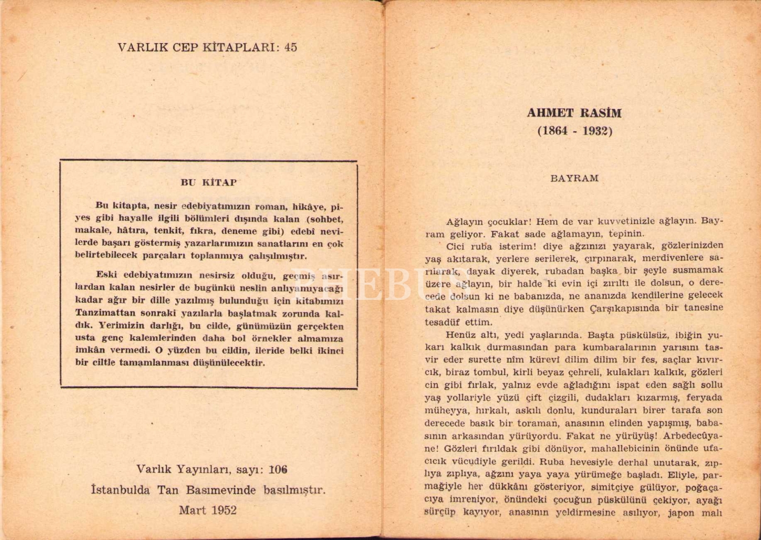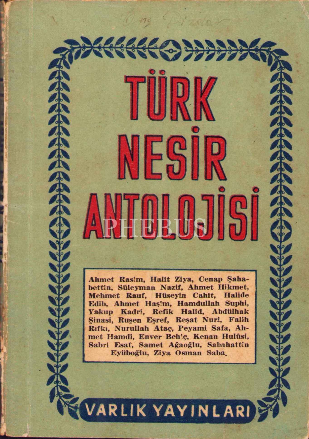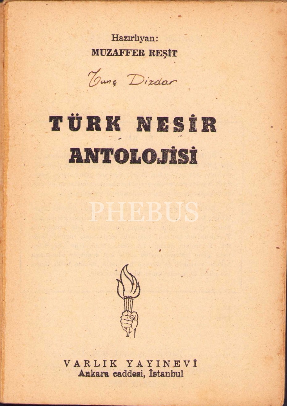 Türk Nesir Antolojisi, haz. Muzaffer Reşit, Varlık Yayınevi, İstanbul 1952, 130 s., 11x16 cm, kapağı yıpranmış haliyle