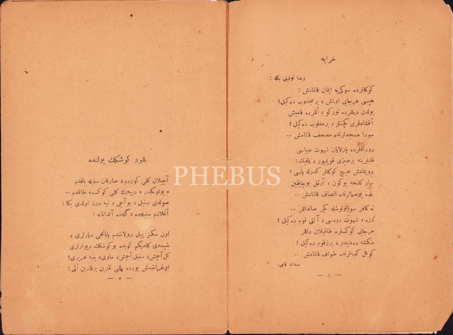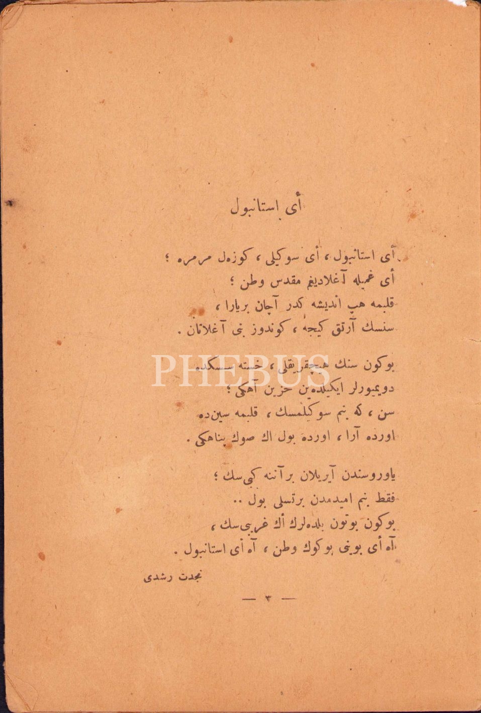 Osmanlıca Çelenk [Manzum ve mensur yazılar], Orhaniye Matbaası, 1920, 31 s., 14x20 cm, kapak sayfası yıpranmış haliyle