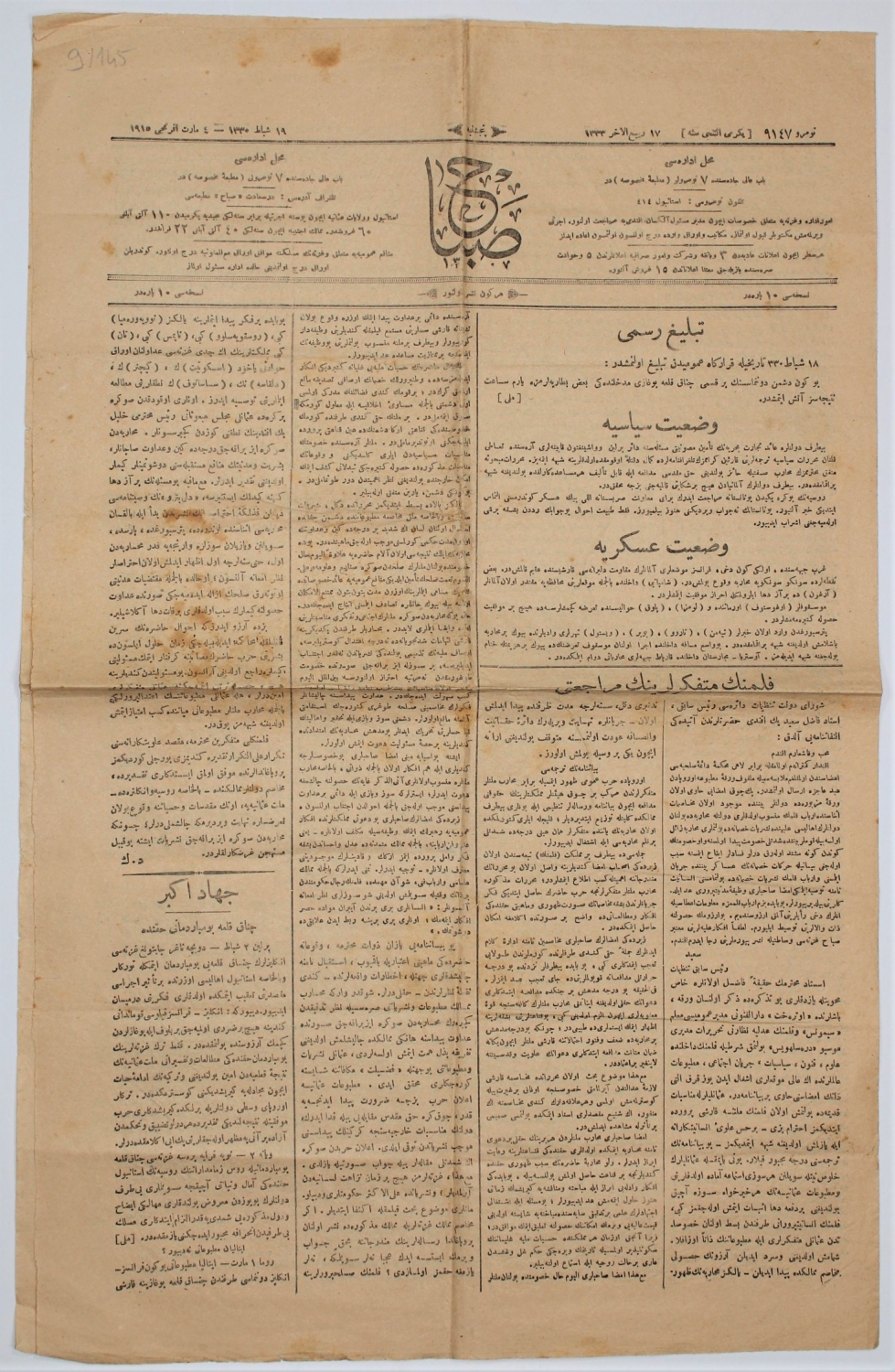 Osmanlı Sabah Gazetesi, 1910 tarihli, 4 sayfa, 34x56cm