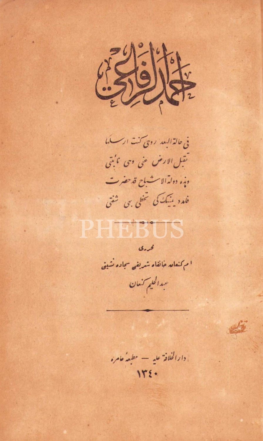 Osmanlıca Ahmed er-Rifâî, Abdülhalim Kenan [Rifaî], Amire Matbaası, İstanbul 1340, 222+103 s., 16x24 cm, cildi yıpranmış haliyle