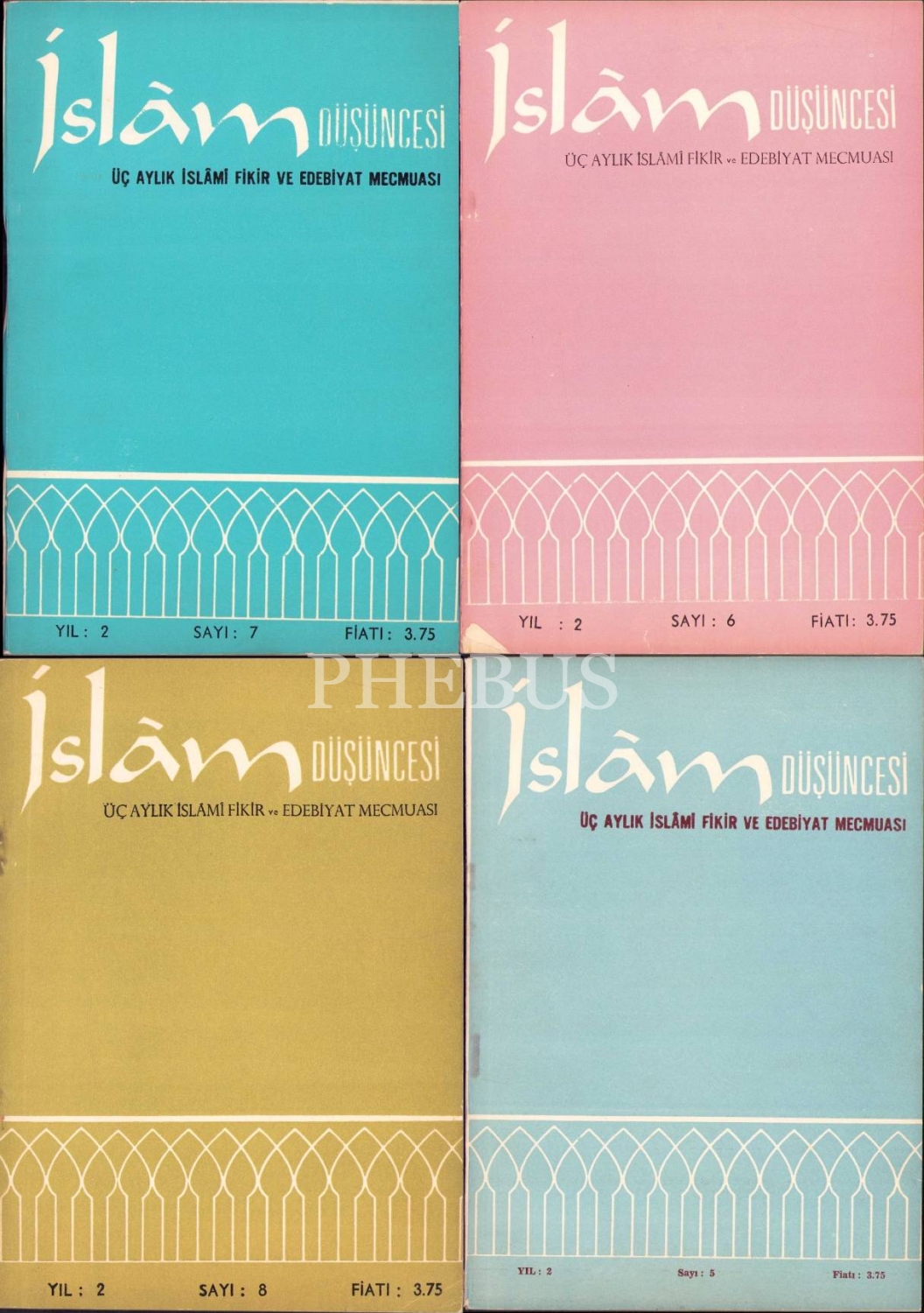 4 adet İslâm Düşüncesi dergisi 5-8. sayılar, Nisan 1968-Ekim 1969, 17x24 cm, kapakarı yorgun haliyle