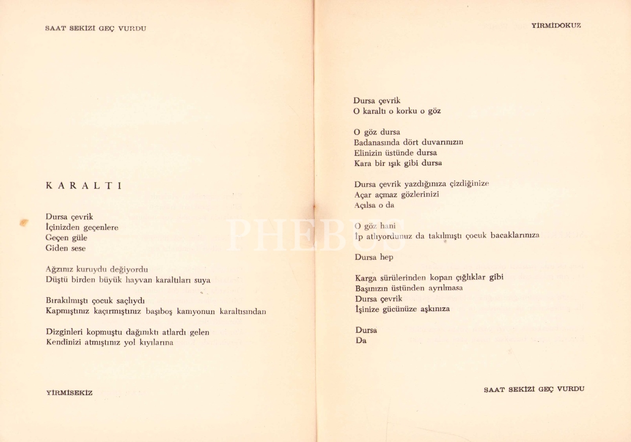 Şair Arif Damar'dan İthaflı ve İmzalı "Saat Sekizi Geç Vurdu", İlk Baskı, İstanbul Matbaası 1962, 30 sayfa, kitap sırtı yorgun haliyle, 14x20 cm