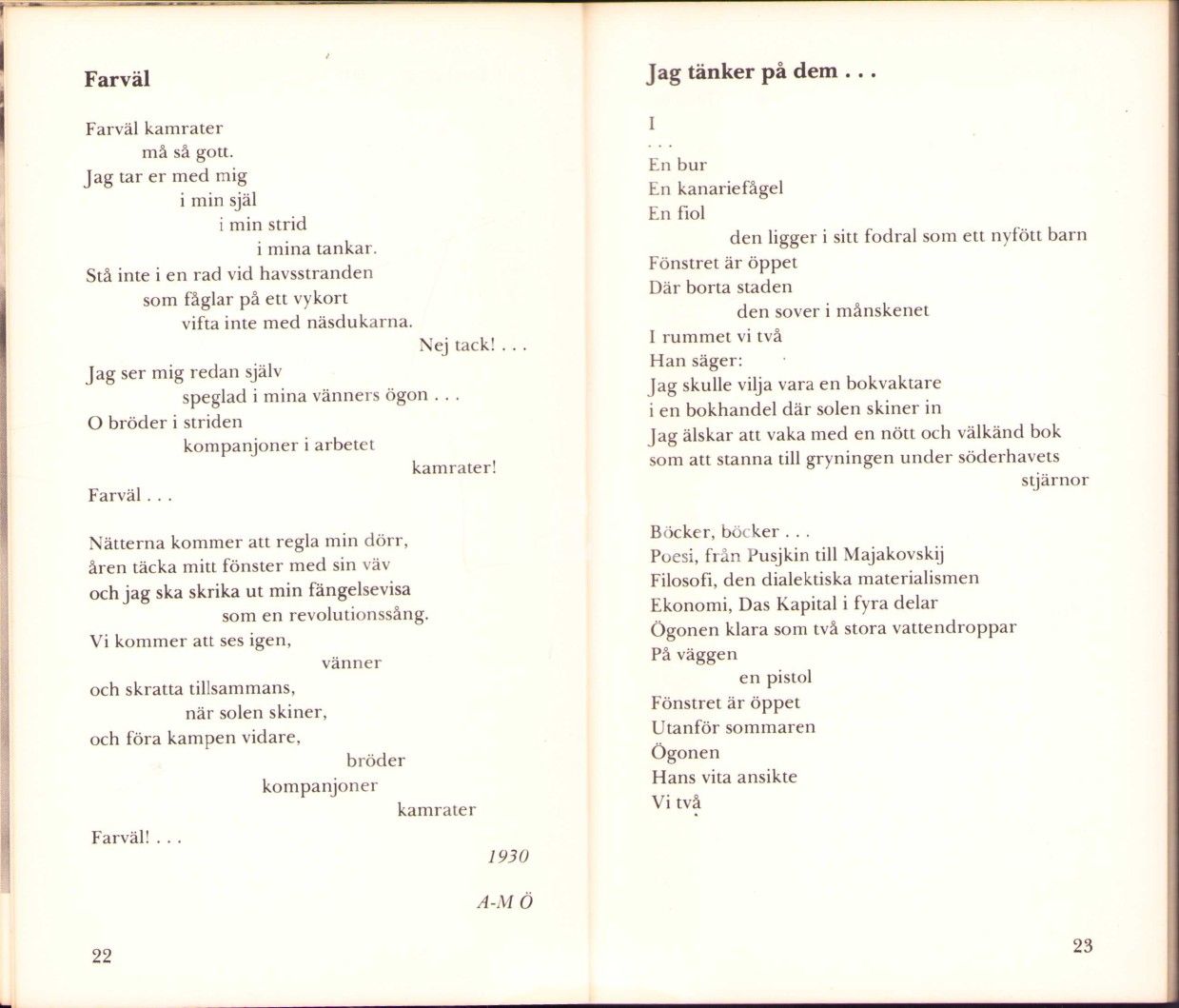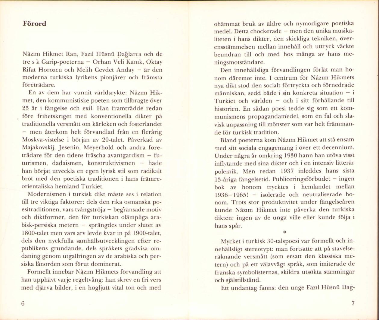 İthaf, "Ulla x Demir - İsveçten bir tutam hasret, sevgiyle, 76" şeklindedir. Kitap, Nâzım Hikmet, Fazıl Hüsnü, Orhan Veli, Oktay Rifat ve Melih Cevdet Anday'ın İsveççe çeşitli şiirlerinin bulunduğu bir derlemedir.