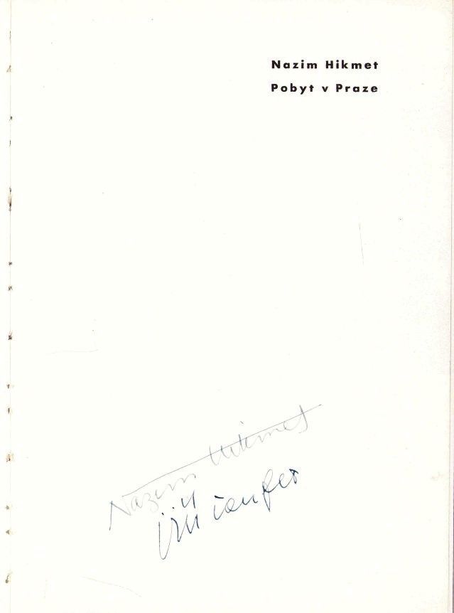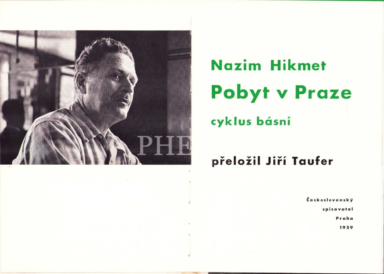 Nâzım Hikmet ve Çek Şair Jiri Taufer'den İmzalı, Nâzım Hikmet'in Prag'ta Kaldığı Dönemlerde Çekilmiş Fotoğrafları ve Şiirlerini İçeren Çekçe "Pobyt v Praze" [Prag'daki Günlerim]" Şiir Kitabı, Prag 1959 Baskı, 38 sayfa, 18x25 cm