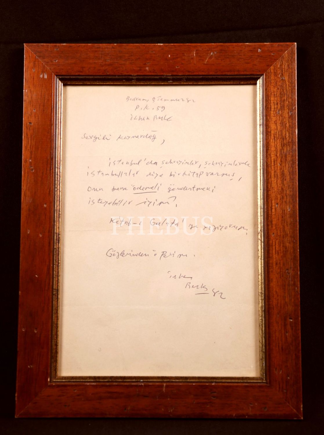 Orhan Veli'den Yaşar Nabi'ye İmzalı Osmanlıca Mektup, Çerçeve İçerisinde, 19x26 cm