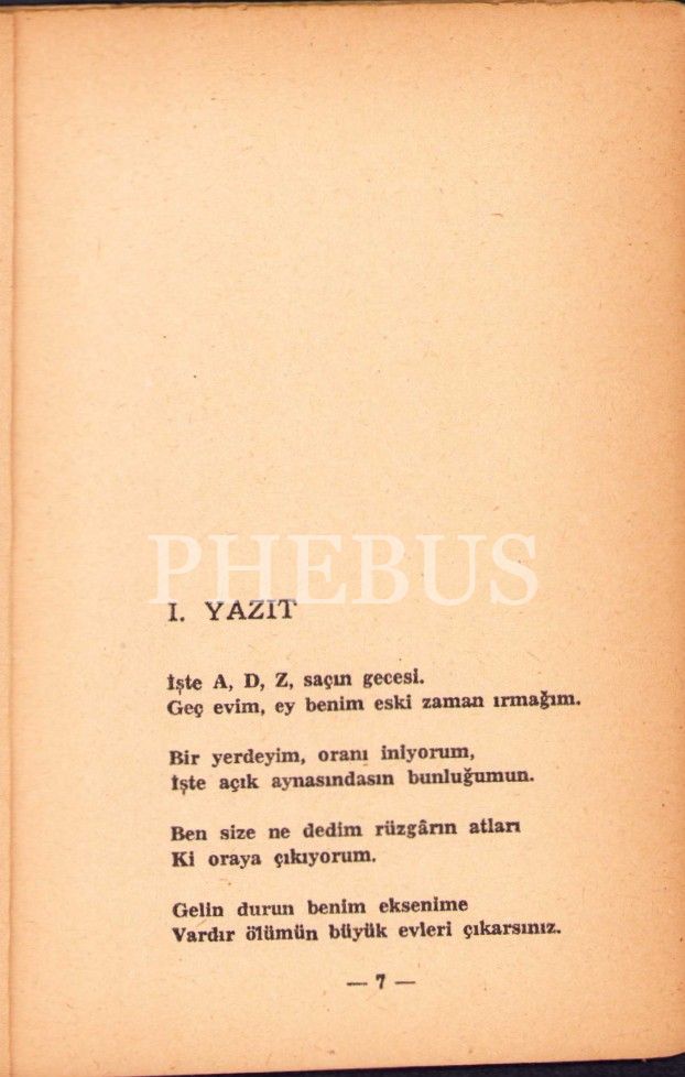 İthaf, "İkisi de çırılçıplak biri şiir biri sen / Şiirlerim çırılçıplak belki tarih olur, olmazsa senin pipo tütünü lazım. - İlhan Berk '89" şeklindedir.