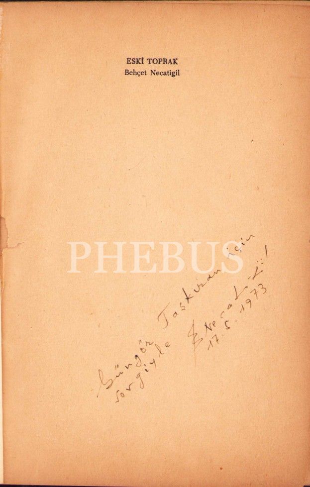 Behçet Necatigil'den İthaflı ve İmzalı "Eski Toprak", De Yayınevi, İkinci Baskı 1965, 79 sayfa, 13x20 cm