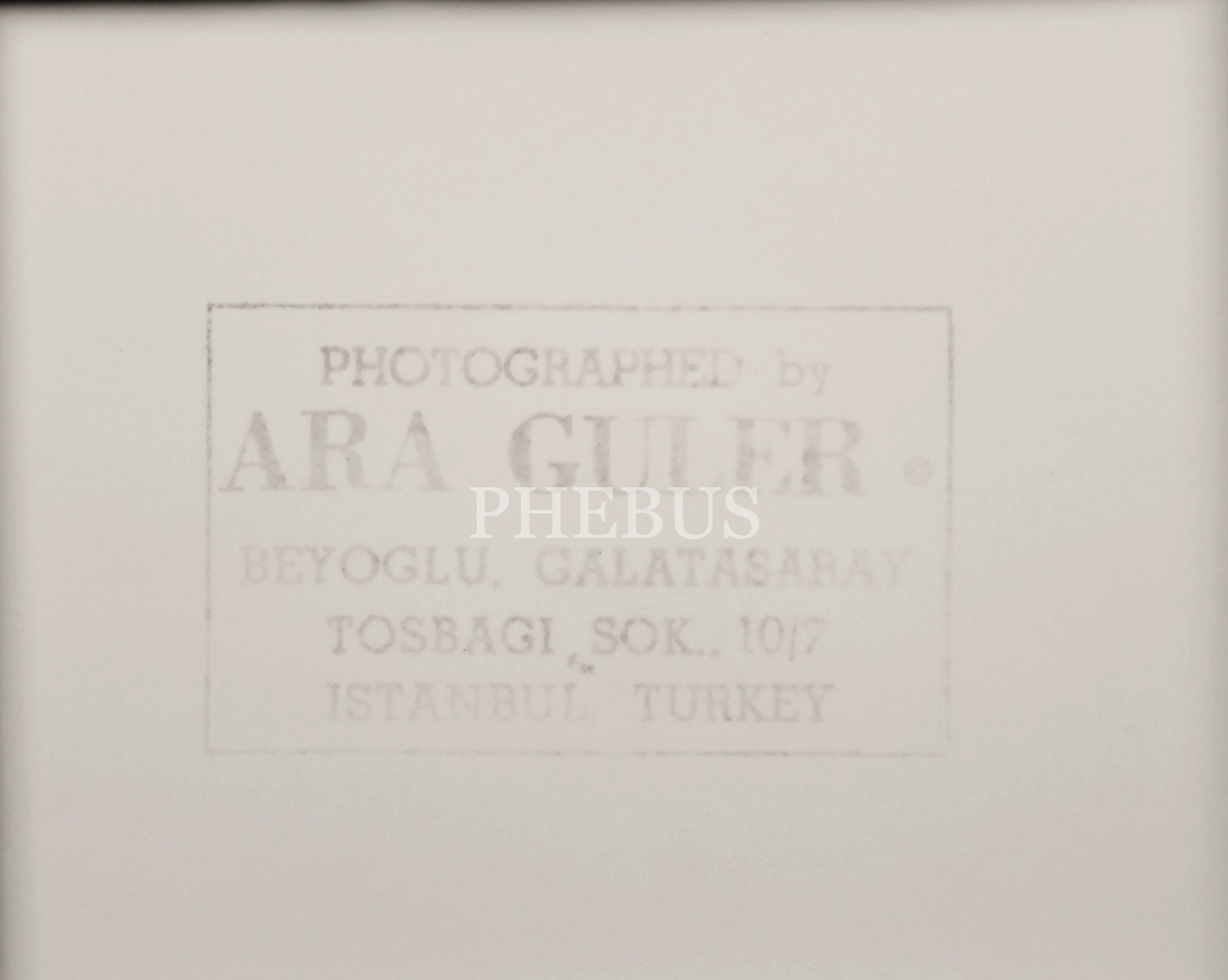 Ara Güler "Ünlüler: Yaşar Kemal" başlıklı kabartma ve ıslak imzalı, arkası "Photographed by Ara Güler" kaşeli fotoğraf, 16x20 cm