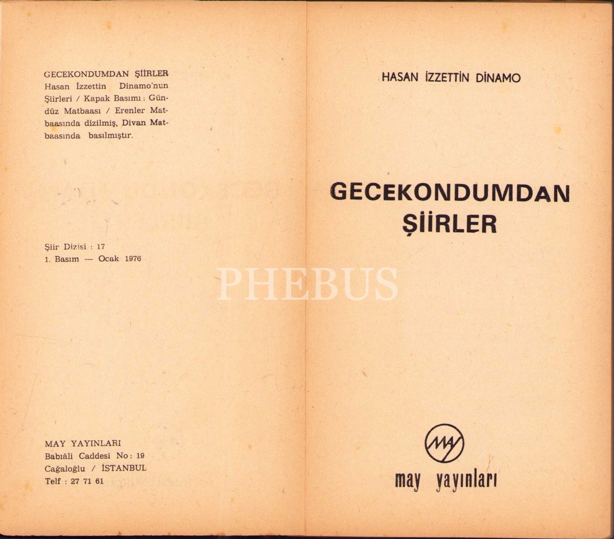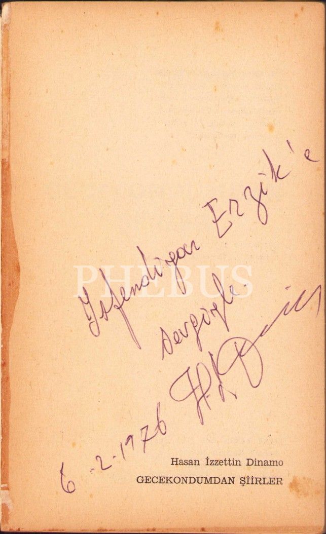 Hasan İzzettin Dinamo'dan İthaflı ve İmzalı "Gecekondumdan Şiirler", İlk Baskı, May Yayınları 1976, 136 sayfa, 12x20 cm
