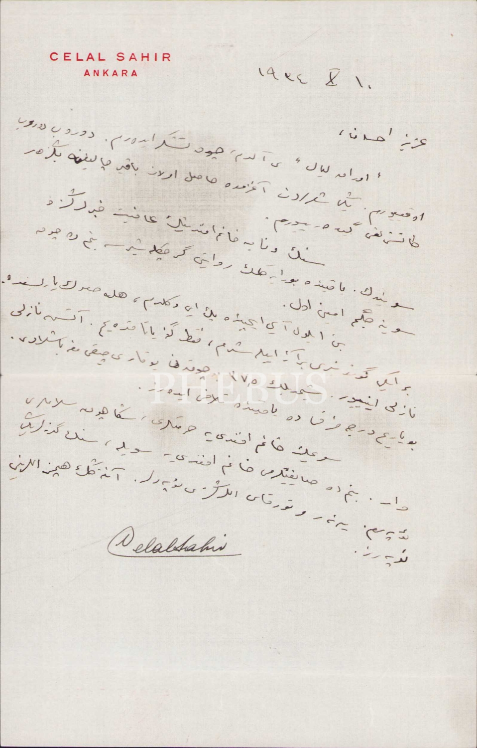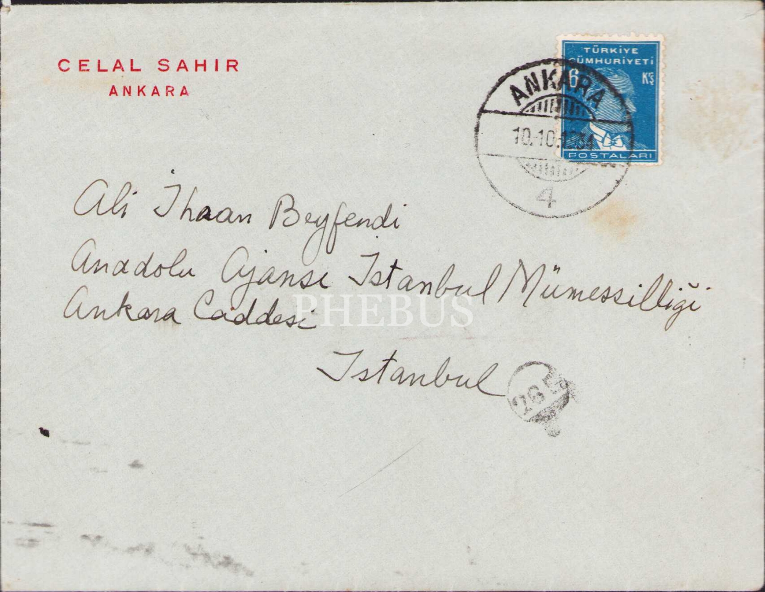 Döneminde ‘Aşk ve Kadın Şairi’ Olarak Tanınan Celal Sahir’in, Gazeteci Ali İhsan (Barlas)’a Yazdığı Osmanlıca Mektup, Zarfıyla Birlikte, 13x21 cm