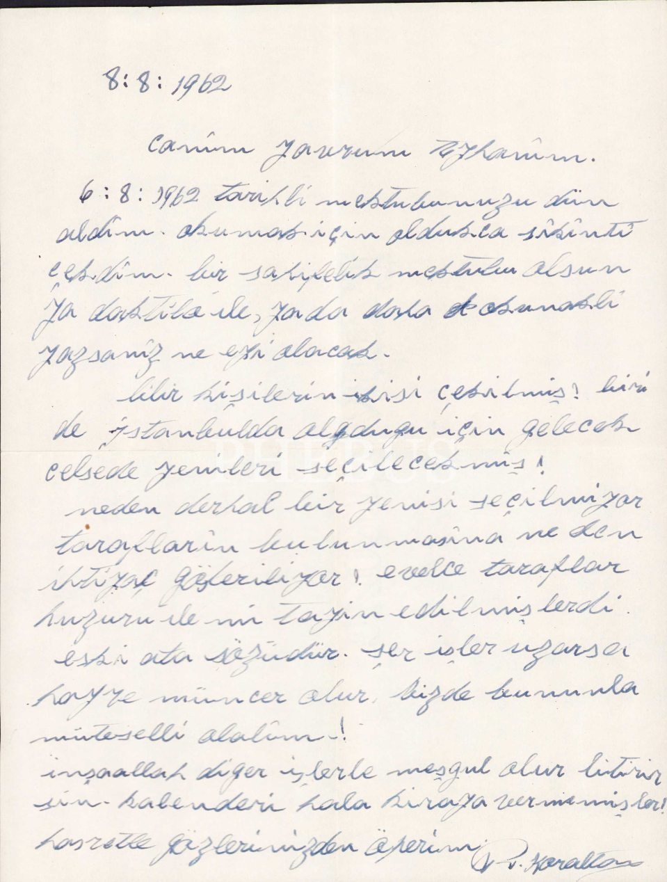 Siyasetçi Refik Koraltan'dan Kızı Ayhan'a Gönderilmiş 1962 Tarihli Mektup, 22x29 cm