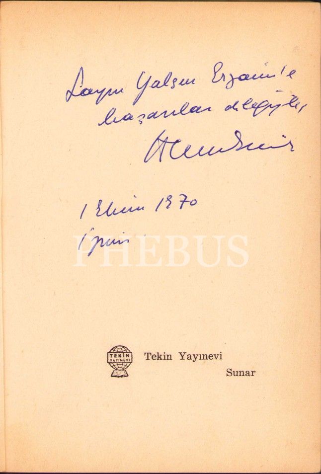 İthaf "Sayın Yalçın [?]'e başarılar dileğiyle Bülent Ecevit 1 Ekim 1970" şeklindir.