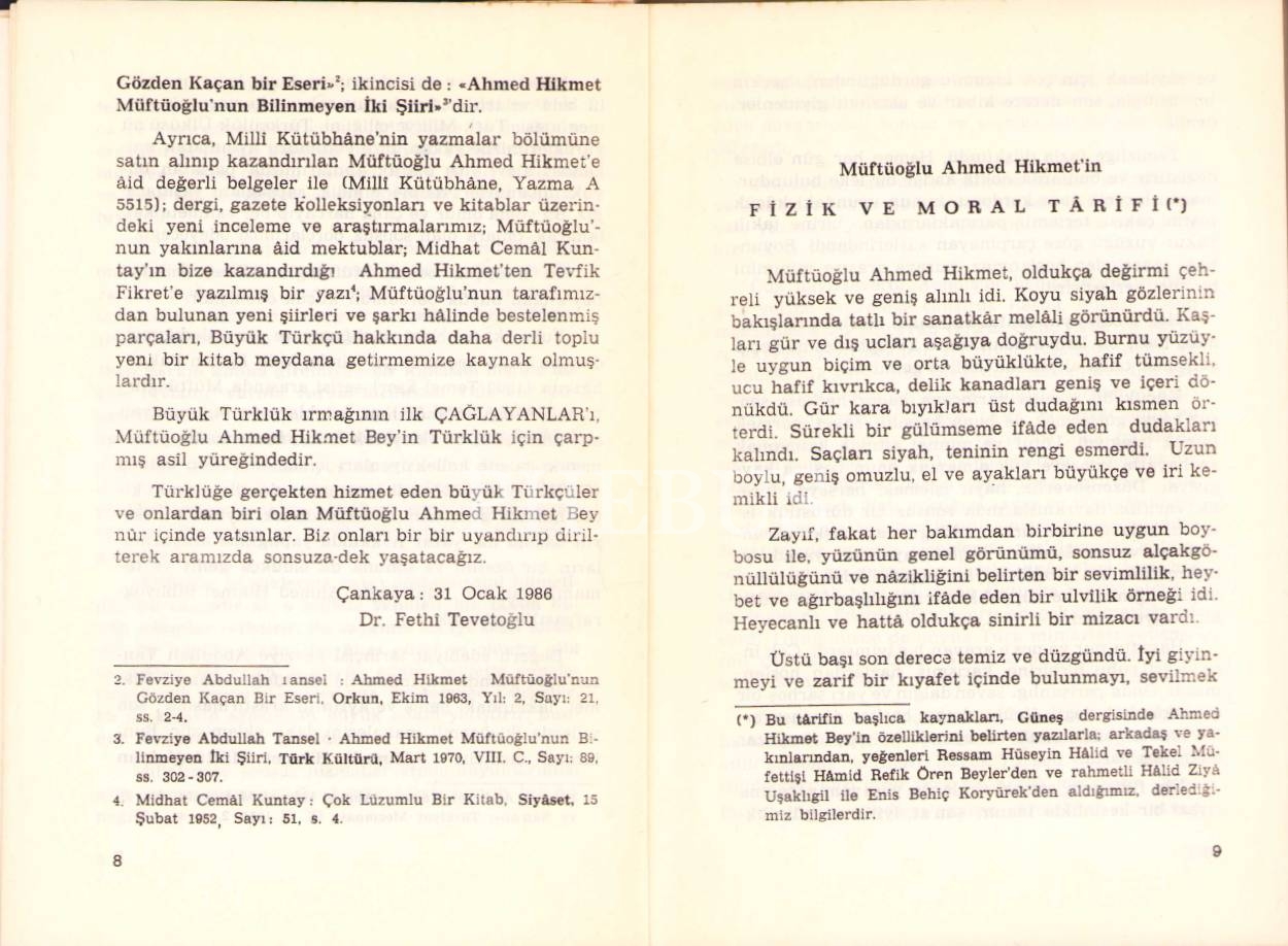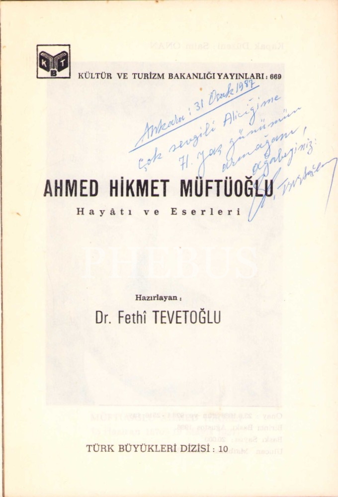 Dr. Fethi Tevetoğlu'ndan İmzalı "Müftüoğlu Ahmed Hikmet", 1986, 228 sayfa