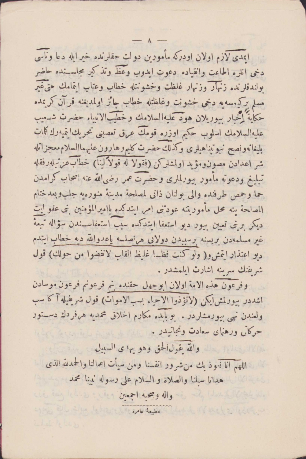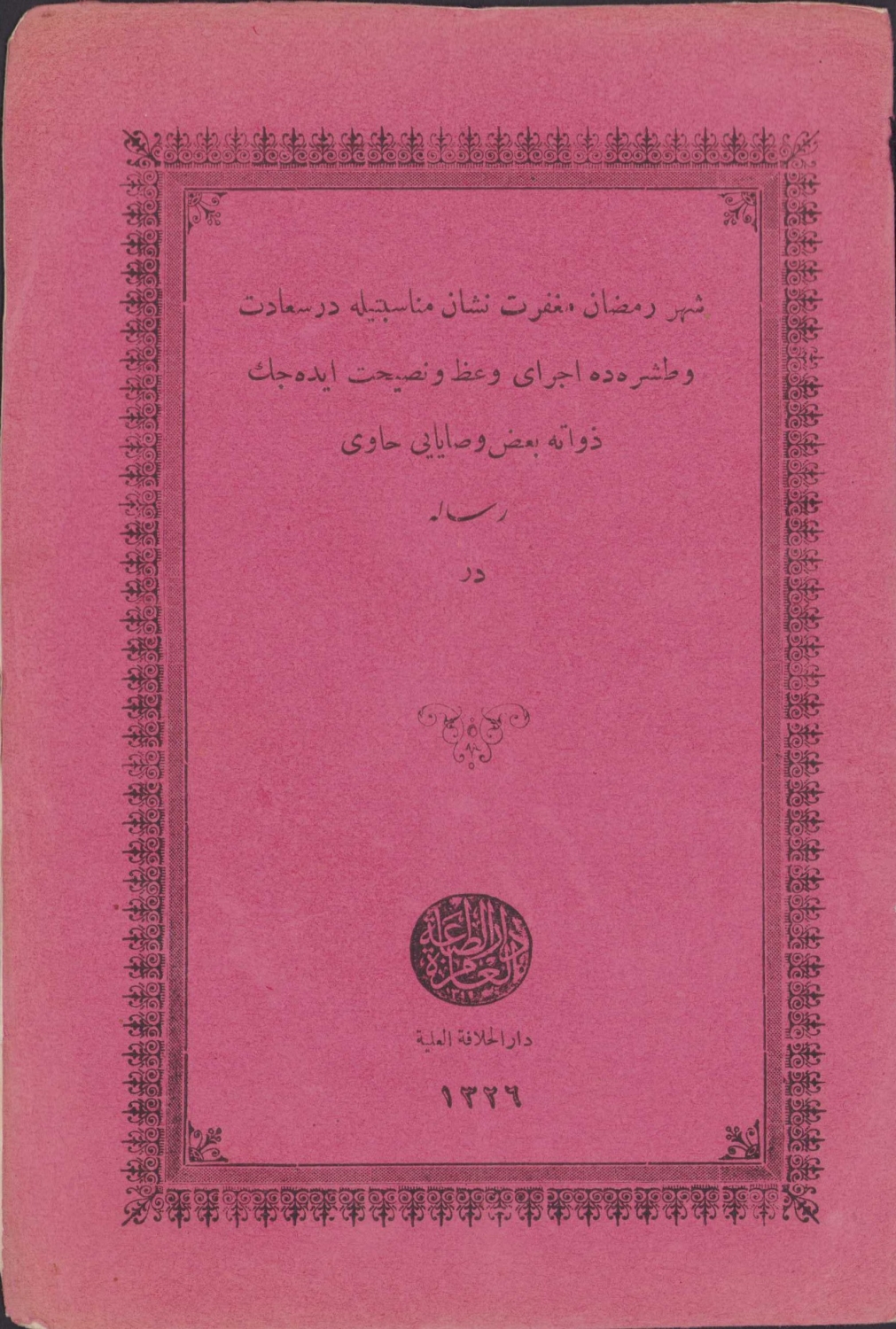 Dersaadet ve Taşrada icrayı vaiz ve nasihat edecek zevate ba'zı ve sayayı havi risaledir, 1326, Matbaa-i Amire, 8 sayfa, 14x20cm