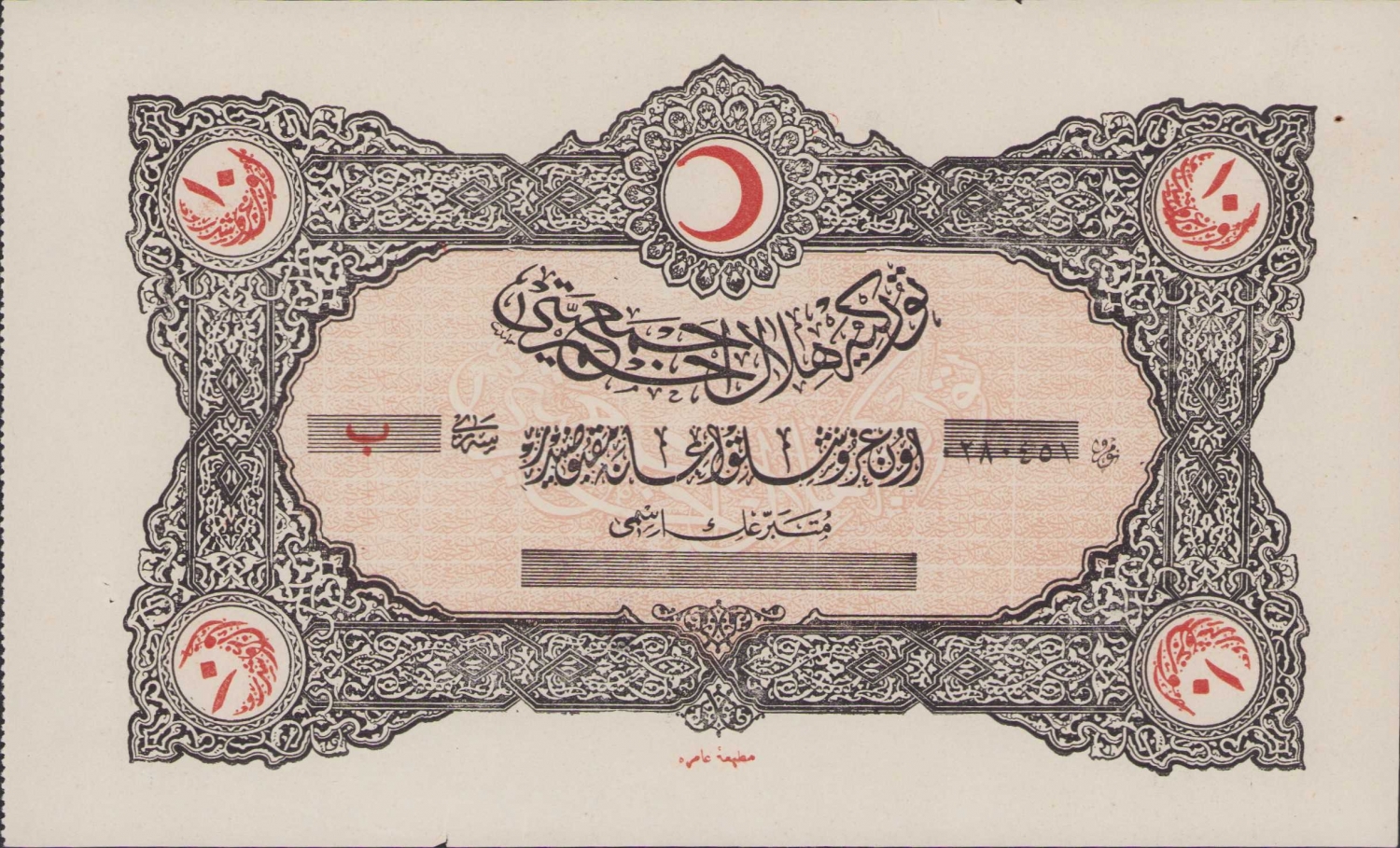 Hilal-i Ahmer Cemiyeti 10 kuruş makbuz, 20x12cm