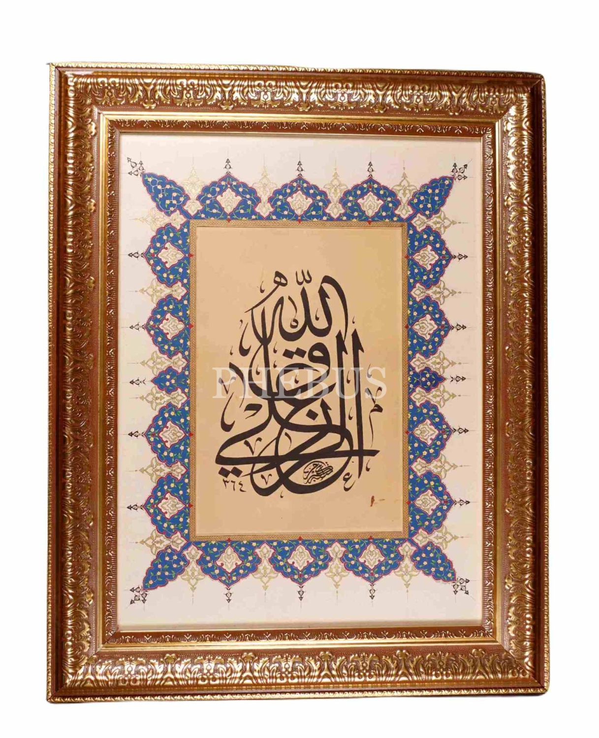 Celî Sülüs İstifi Yazı: "er-Rızku alâ Allah [Rızık Allah'tandır]", Ekrem ketebeli ve 1324 tarihli, 34x23 cm