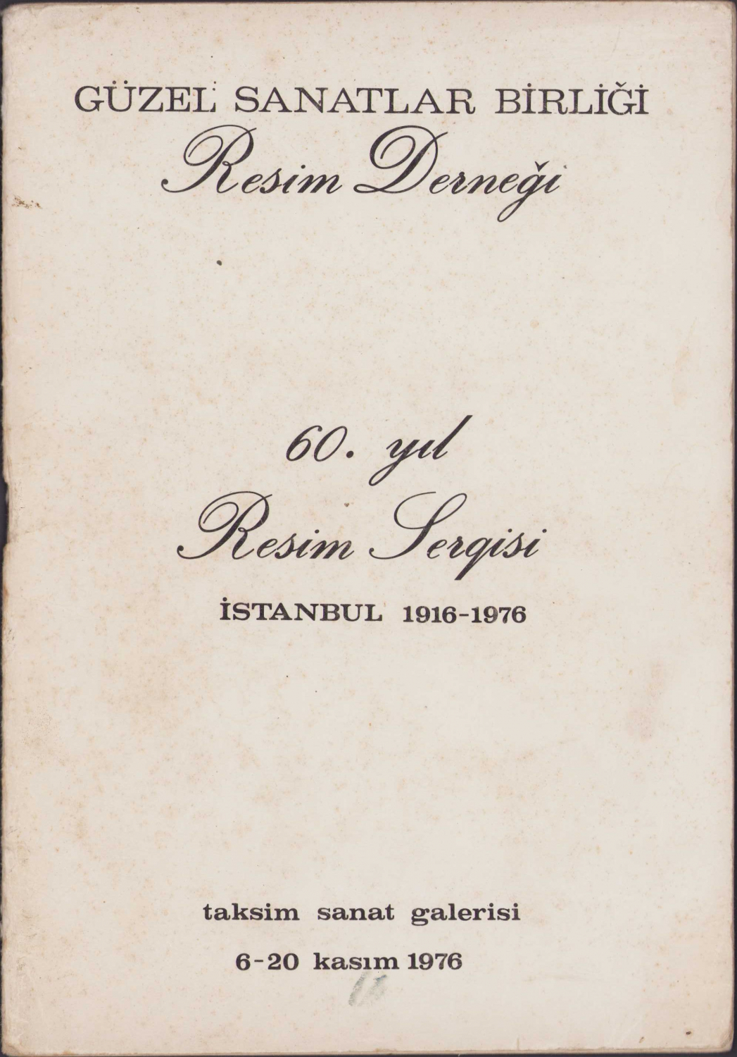 Güzel Sanatlar Birliği Resim Derneği- 60. Yıl Resim Sergisi, istanbul 1916-1976, Taksim Sanat Galerisi, 1976 baskısı, Baha Matbaası, 32 sayfa, 17,5 x25 cm