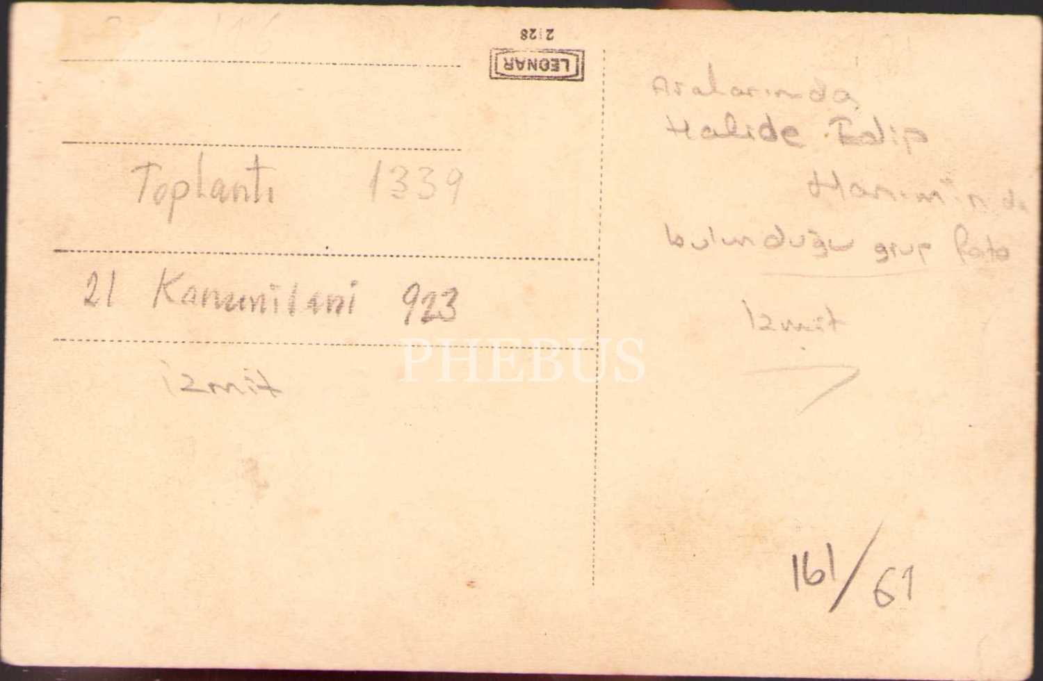 Halide Edip Adıvar, İlk Kadın Avukatlarımızdan Süreyya Ağaoğlu ve Darulfünun Müdürü İsmayıl Hakkı Baltacıoğlu'nun Bulunduğu İzmit Grup Hatıra Fotoğrafı, 9x14 cm