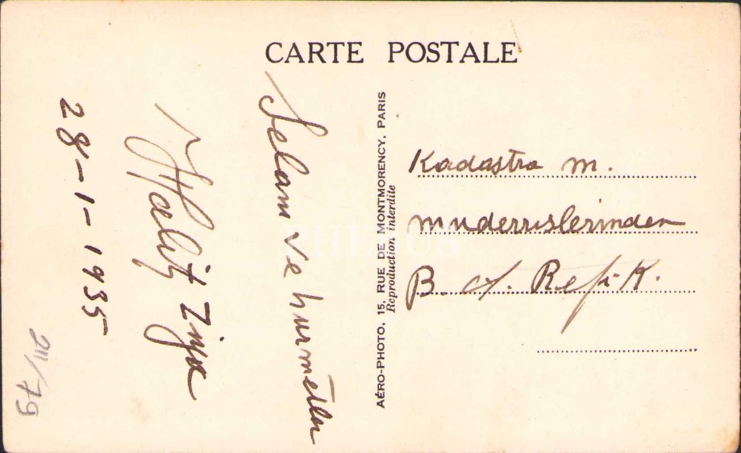 Fotokartın arkasında "Selam ve hürmetle Halit Ziya, 28.1.1935, Kaastro m. müderrislerinden B.A. Refik" şeklinde not düşülmüştür.