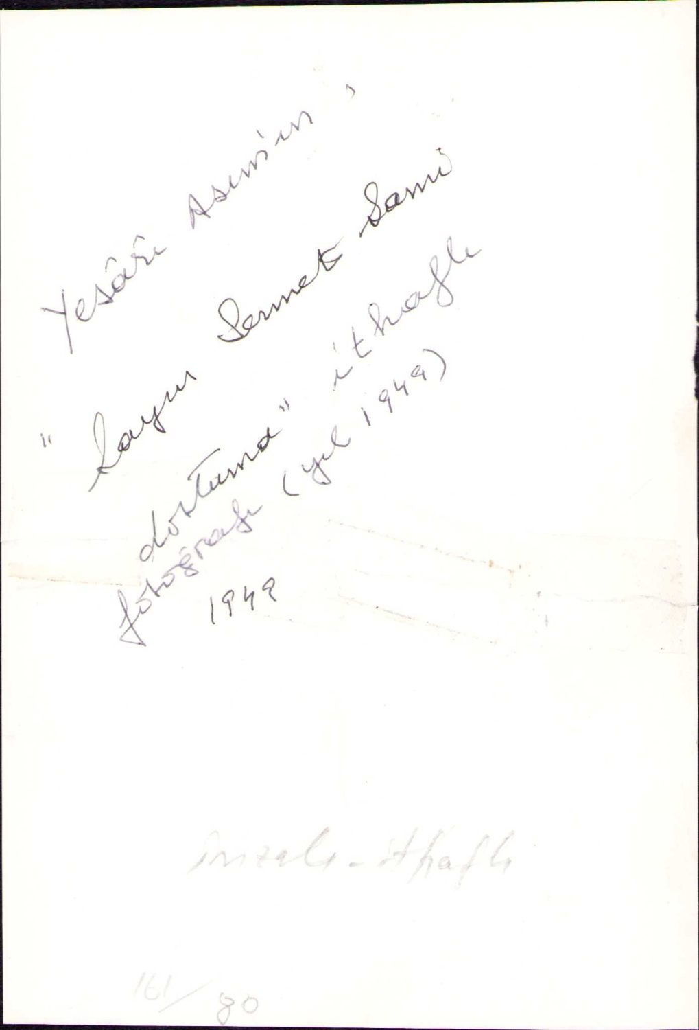 Bestekâr Yesârî Asım Arsoy'dan Edebiyatçı Sermet Sami Uysal'a İthaflı ve İmzalı Fotoğraf,