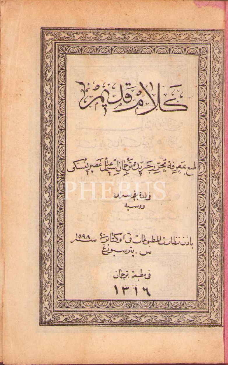 Kelâm-ı Kadîm [Kur'ân-ı Kerim], yay. İsmail Gaspıralı, Tercüman Matbaası, Bağçesaray/Rusya 1316, 7x10 cm, cildi ve özel kabı yıpranmış haliyle