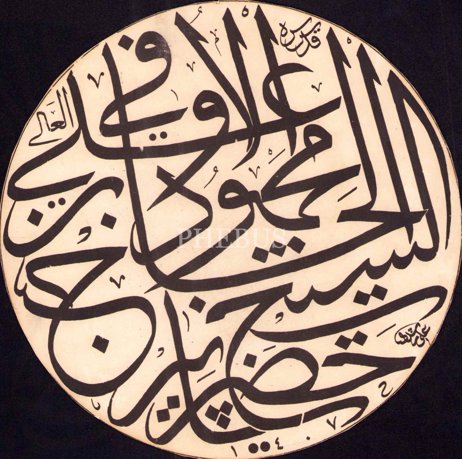 Baskı Celî Sülüs İstifi Yazı: "Yâ Hazret-i Pîr eş-Şeyh el-Hac Mahmud bin Ali el-Ofî", Ali Rüşdi ketebeli ve 1407 tarihli, 23x23 cm