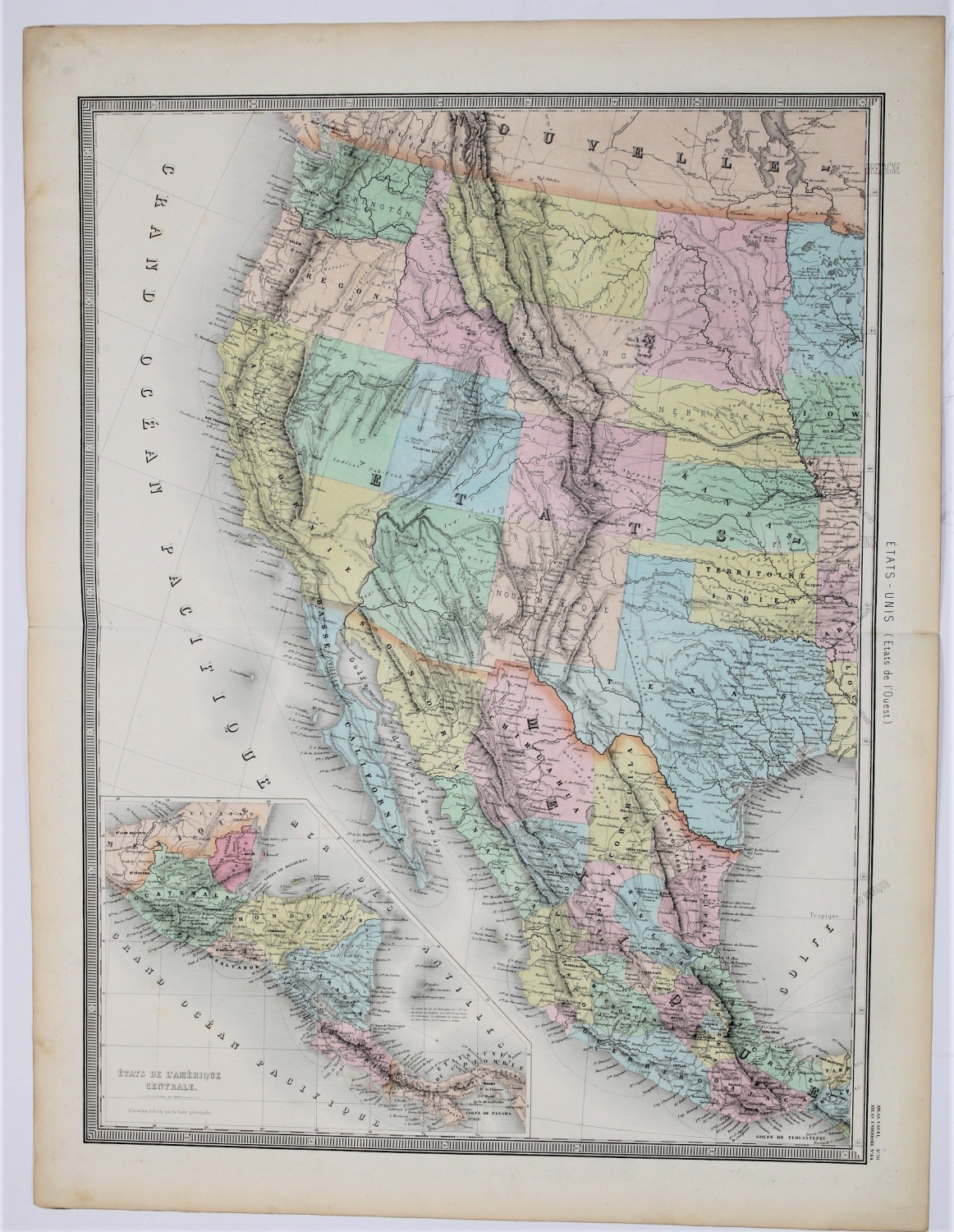 Orta Amerika eyaletleri, Guatemala, Honduras, Nikaragua, Kosta Rika, Panama haritası, 1870ler, 70x53 cm