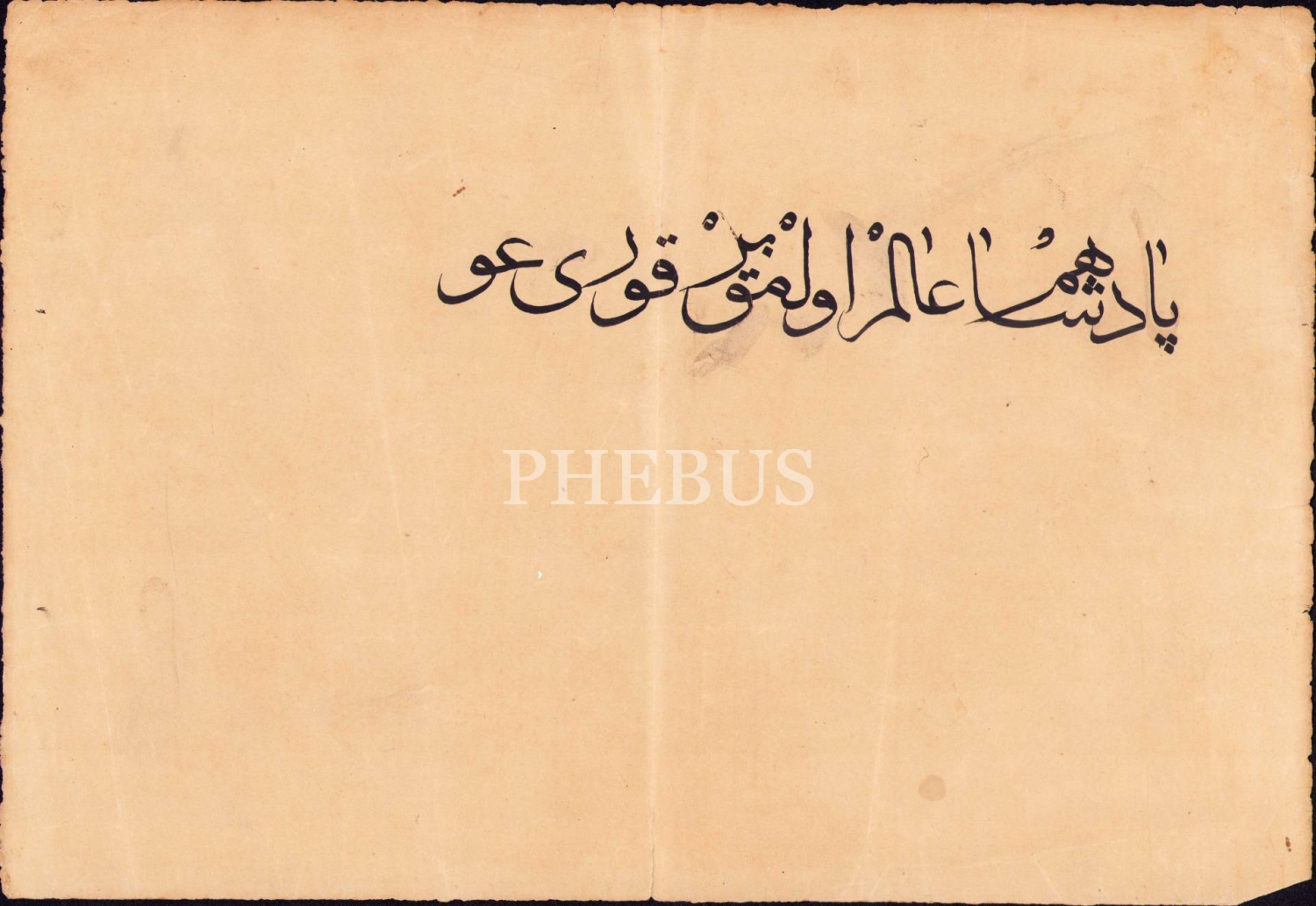 Sülüs Yazı Meşki - "Padişah-ı âlem olmak bir kuru ... [kavga imiş]", 25x36 cm, kenarları hafif yıpranmış haliyle