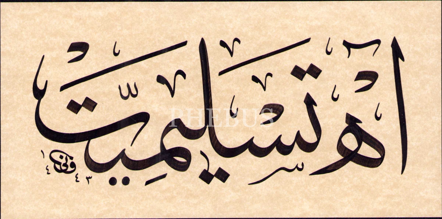 Sülüs Yazı: "Ah Teslimiyyet", Fânî ketebeli ve 1443 tarihli, 10x20 cm