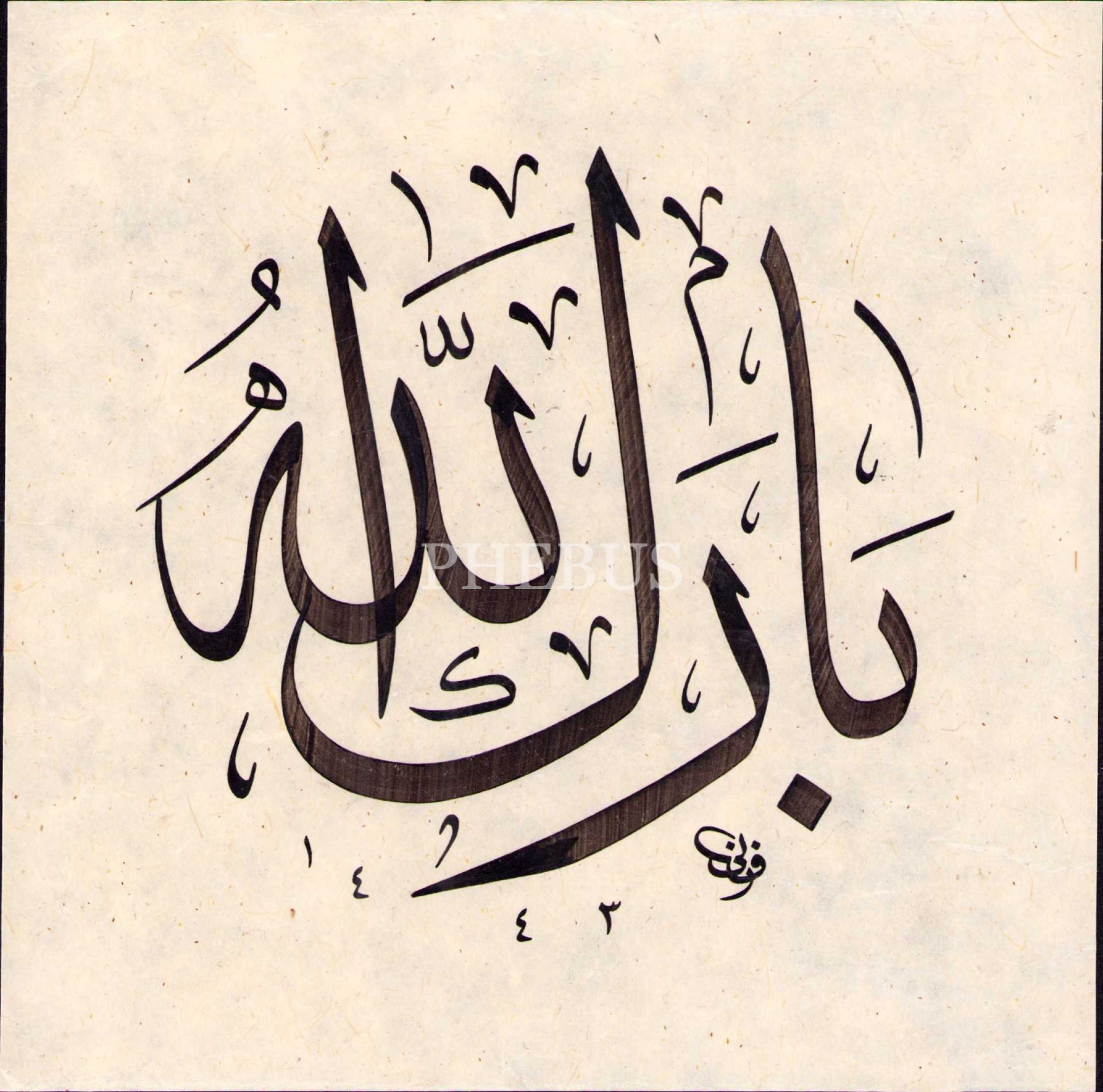 Celî Sülüs "Bârekallah", Fânî ketebeli ve 1443 tarihli, 22x22 cm