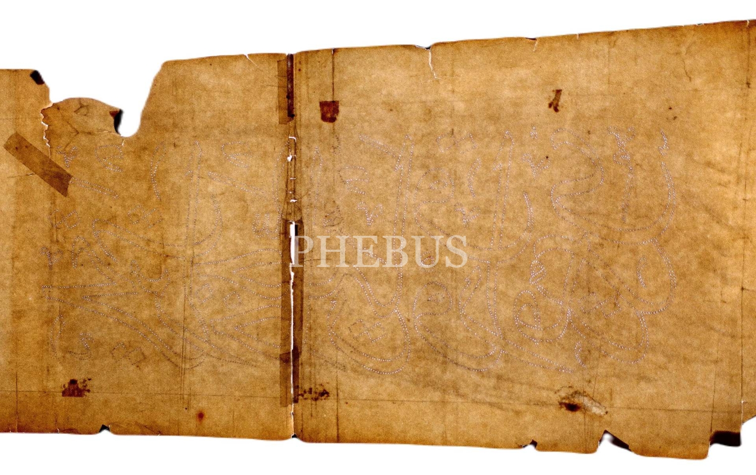 Celî Sülüs İğneli Yazı Kalıbı: "Tahrîrât-ı Hâriciye Evrak Müdürü", 21x57 cm, kenarları yırtılmış haliyle
