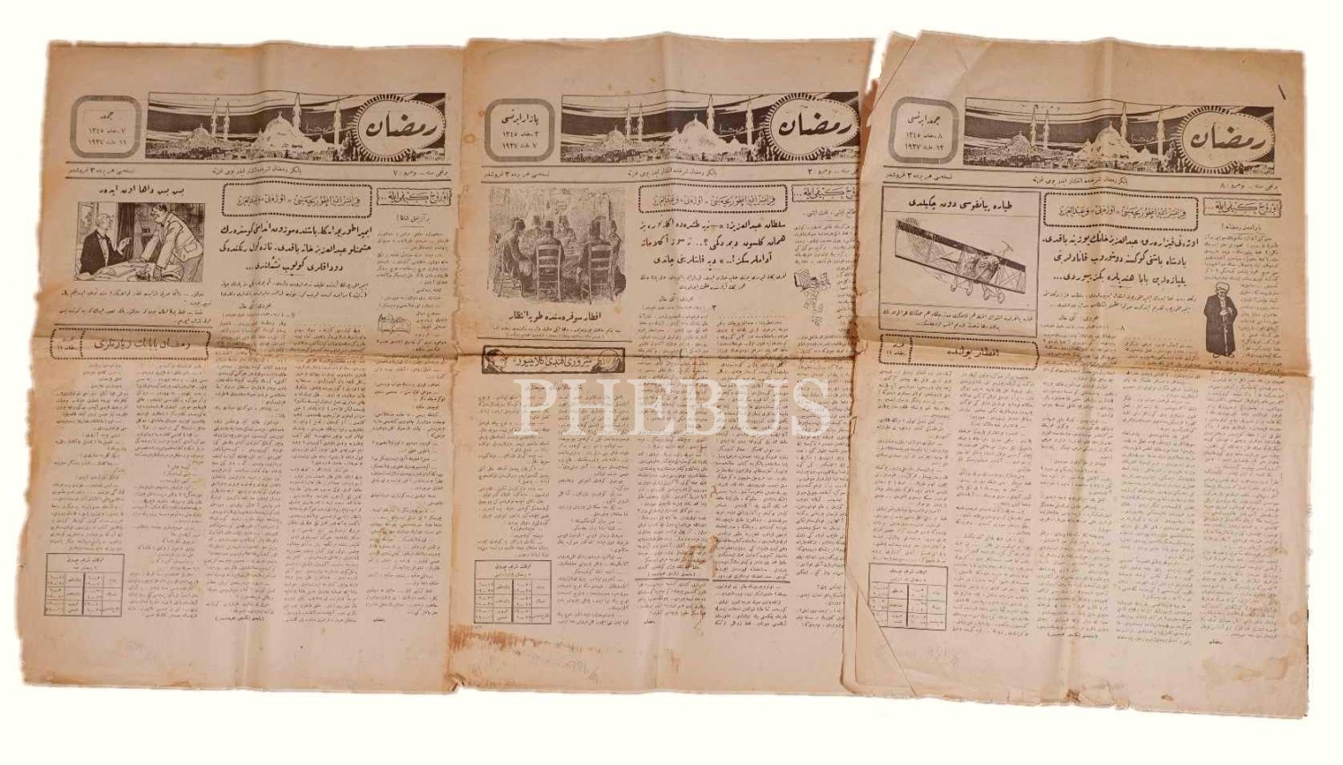 3 adet Osmanlıca Ramazan Gazetesi 1345 tarihli, 50x 34 cm
