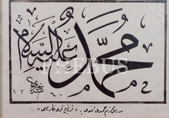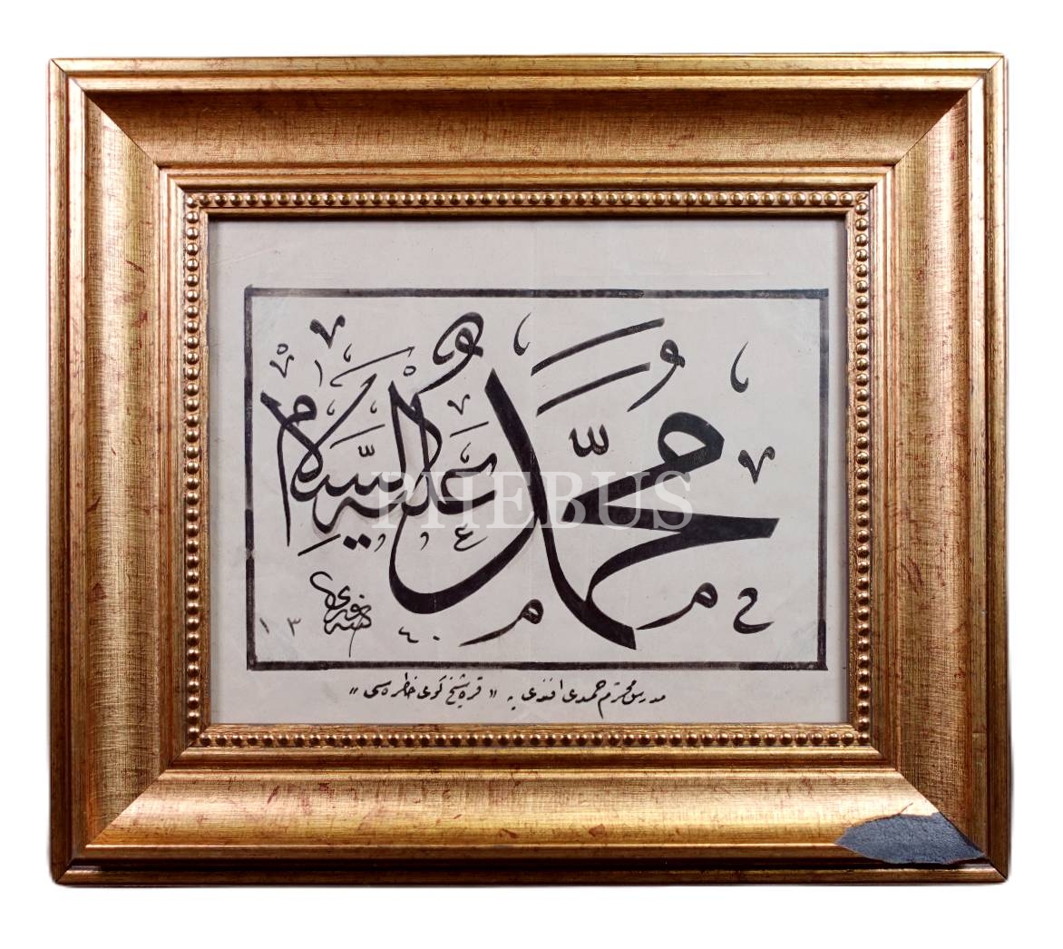 Celî Sülüs "Muhammed Aleyhisselam", Nuri ketebeli ve 1340 tarihli, yazı: 12x18 cm
