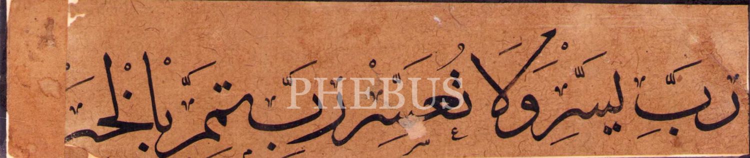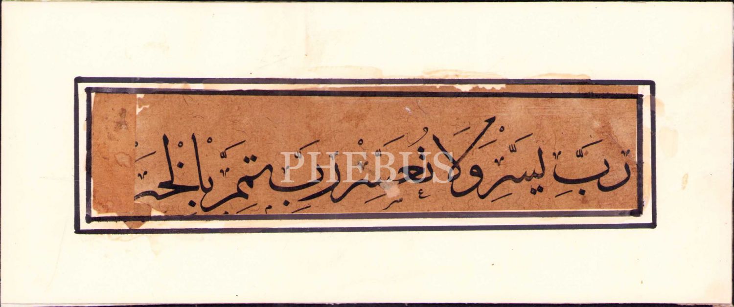 Sülüs Rabbi Yessir Duası: "Rabbim kolaylaştır, zorlaştırma ve hayırla tamamına erdir", yazı: 4x18 cm, yıpranmış haliyle