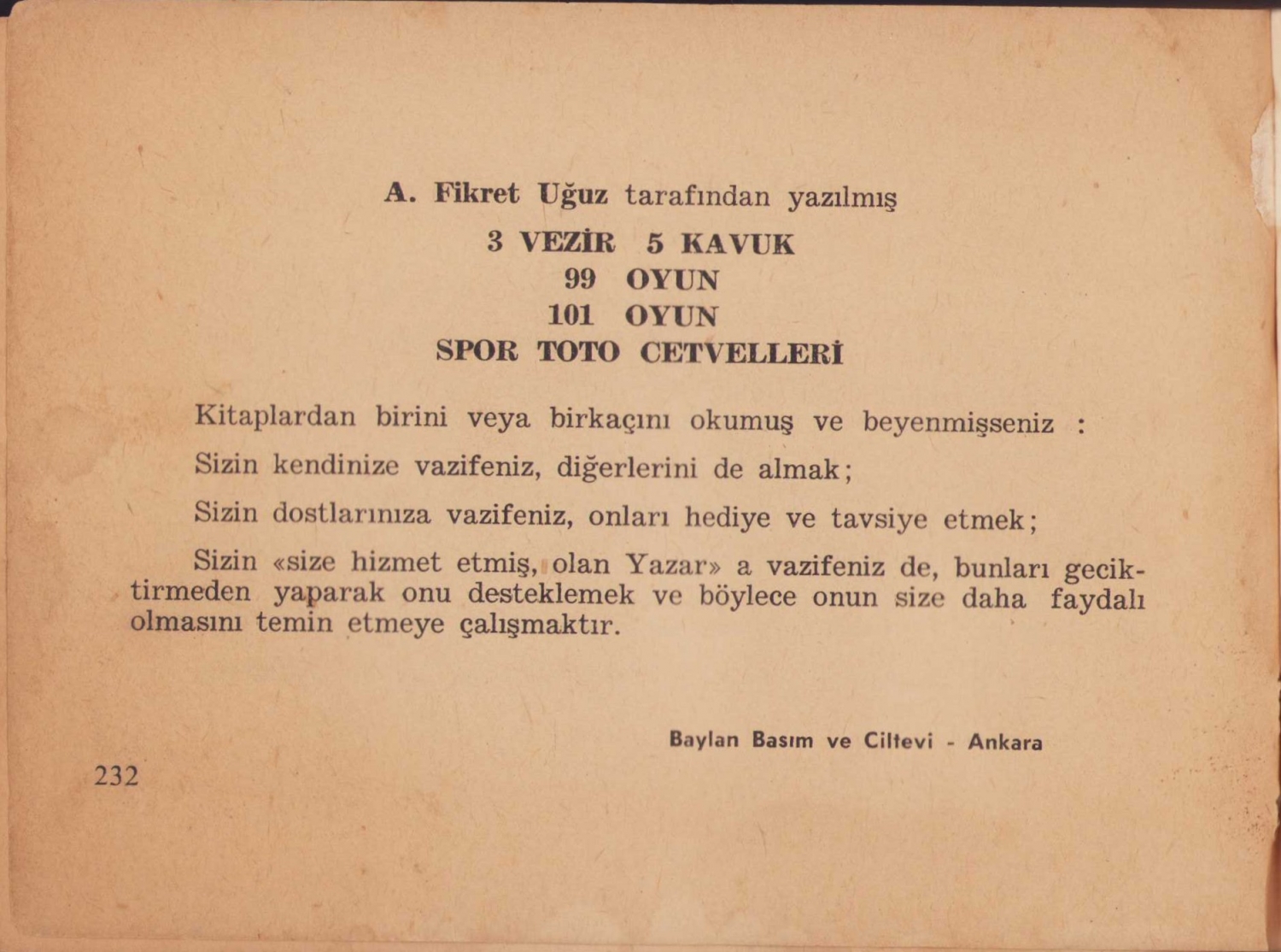 Spor Toto Cetvelleri, Fikret Uğuz, Ankara