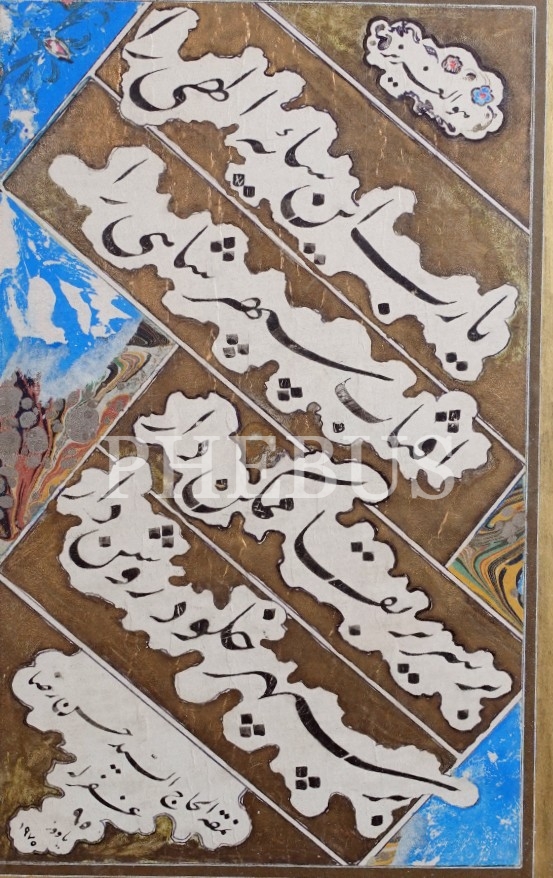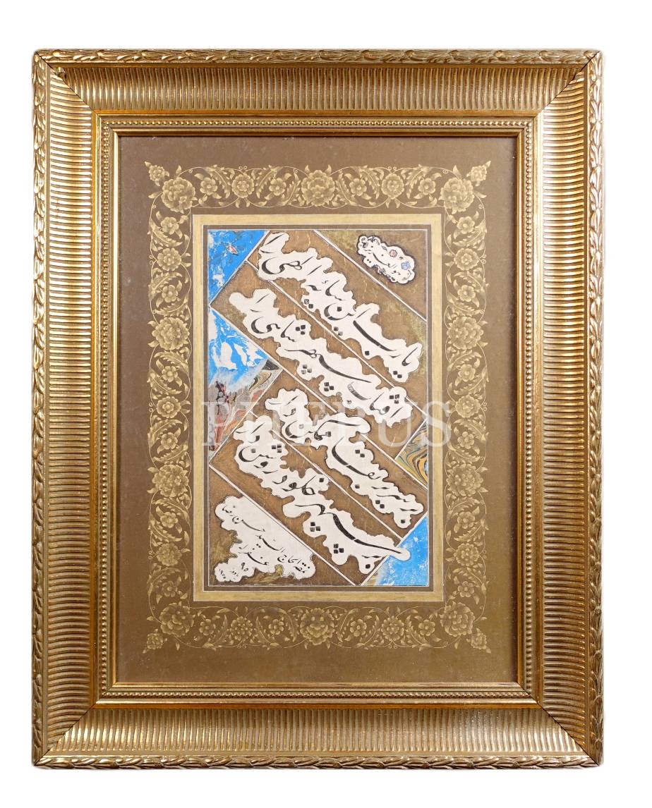 Celî Ta'lik Mâil Farsça Kıt'a, Seyyid Hasan Rıza ketebeli ve 1975 tarihli, tezhipli, yazı: 16x26 cm