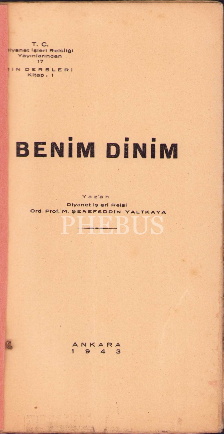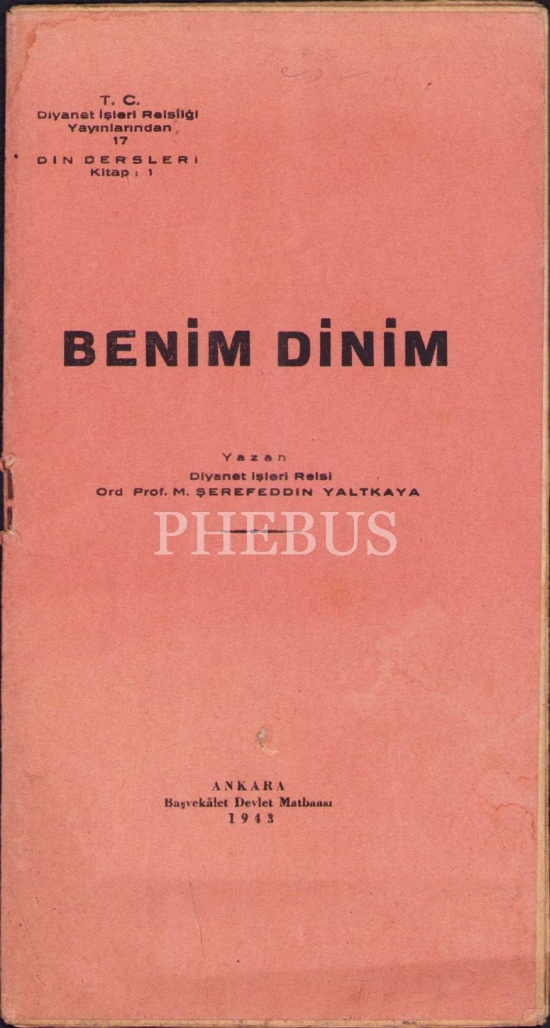 Benim Dinim, M. Şerefeddin Yaltkaya, Başvekâlet Devlet Matbaası, Ankara 1943, 44 s., 13x23 cm, hafif yıpranmış ve sayfaları açılmamış haliyle