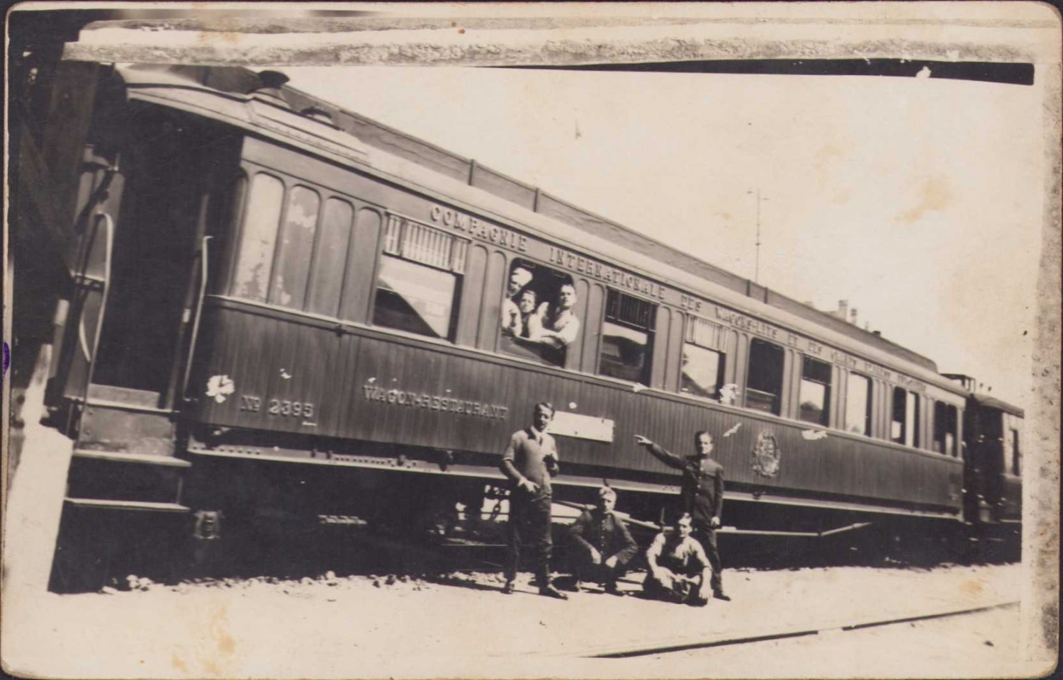 Compagnie Internationale des Wagons-Lits vagonlarının önünde subaylar