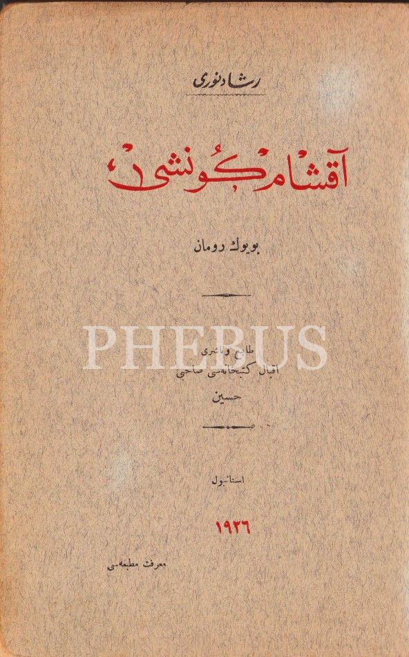 Reşat Nuri'den Osmanlıca "Akşam Güneşi -Roman-" İlk Baskısı, İstanbul Marifet Matbaası 1926, 408 sayfa, cilt sırtı yıpranmış haliyle, 15x23 cm