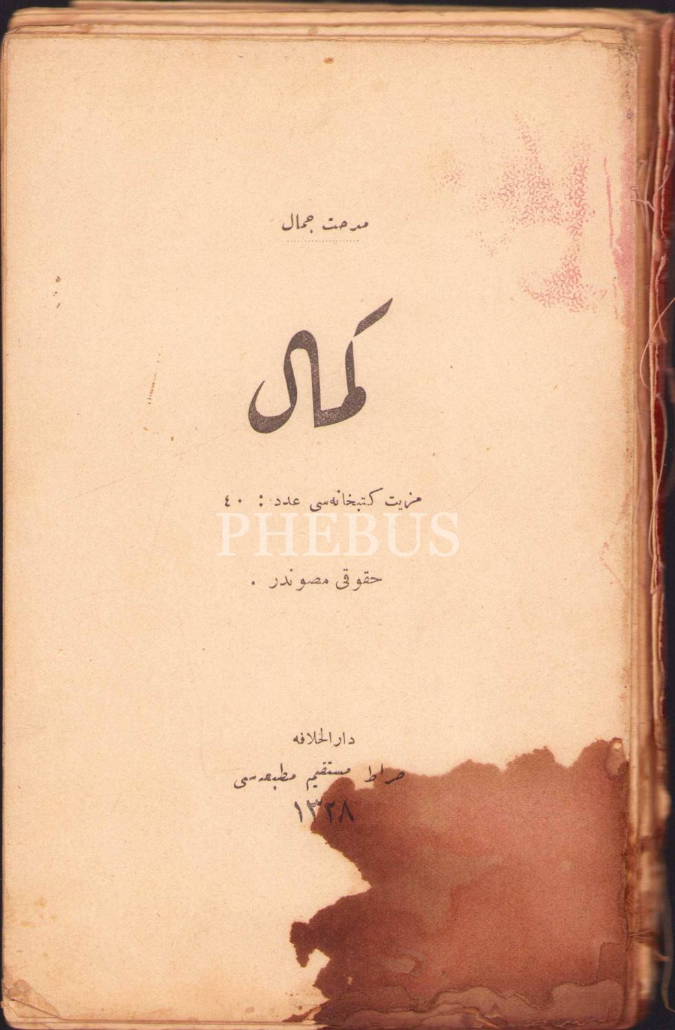 Mithat Cemal'in "Kemal -Tiyatro-" Manzum Piyesi, Dersaadet Sirat-i Müstakim Matbaası 1328, 174 sayfa, ön cildi kopmuş ve kitap sırtı oldukça yıpranmış haliyle, 13x19 cm