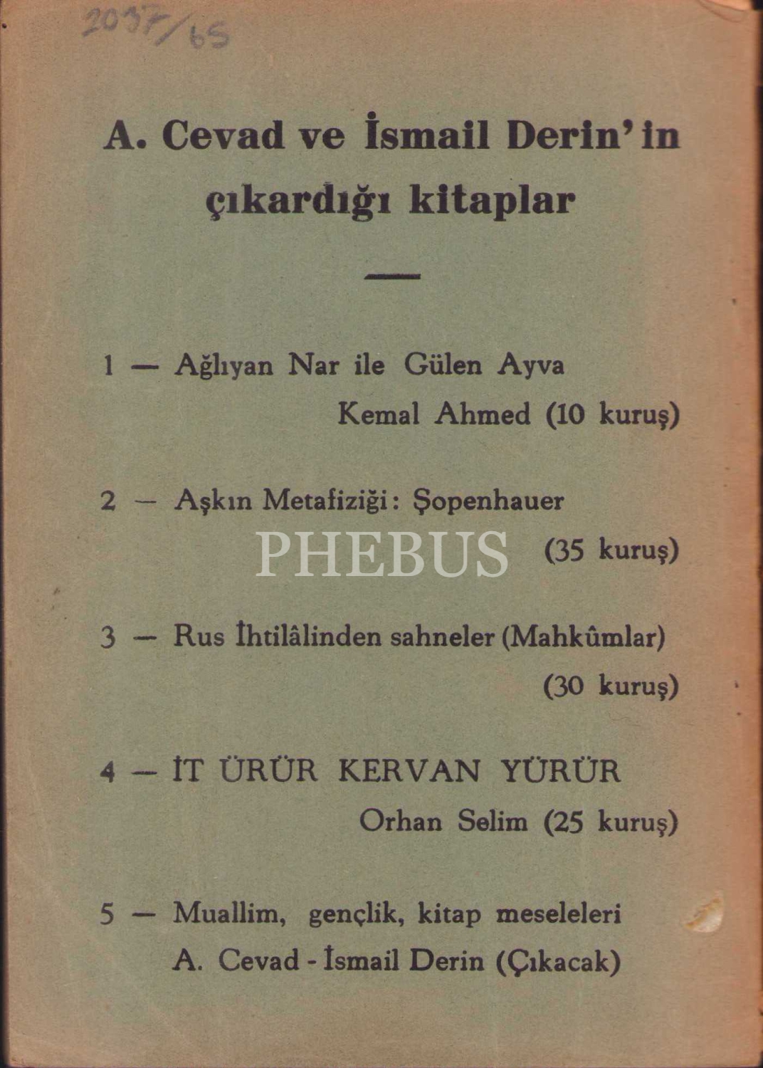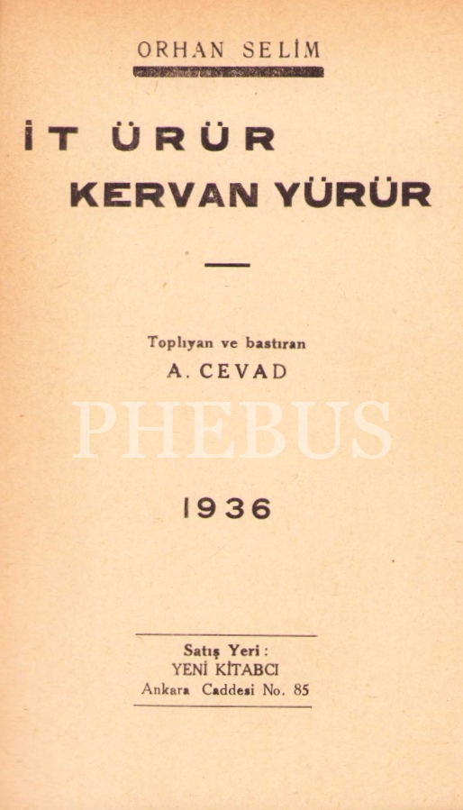 Orhan Selim Mahlasıyla Nazım Hikmet'in "İt Ürür Kervan Yürür" İlk Baskısı, Derleyen: A. Cevad, Selâmet Basımevi 1936, 47 sayfa, kapağı yorgun haliyle, 12x17 cm