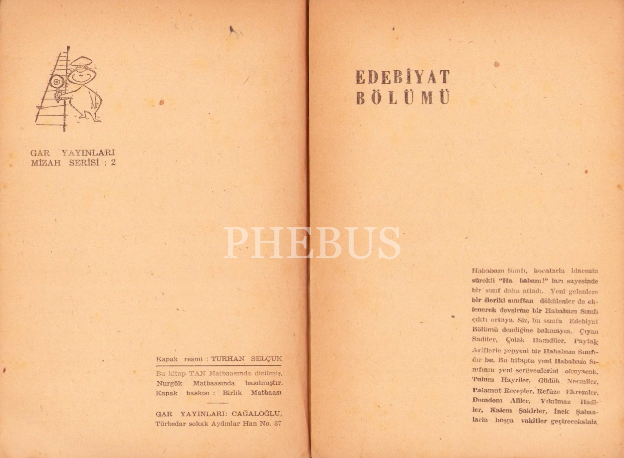 Kapak görseli Turhan Selçuk'a aittir. "16.VII.1959, Rıfat Ilgaz" şeklinde imzası bulunmaktadır.