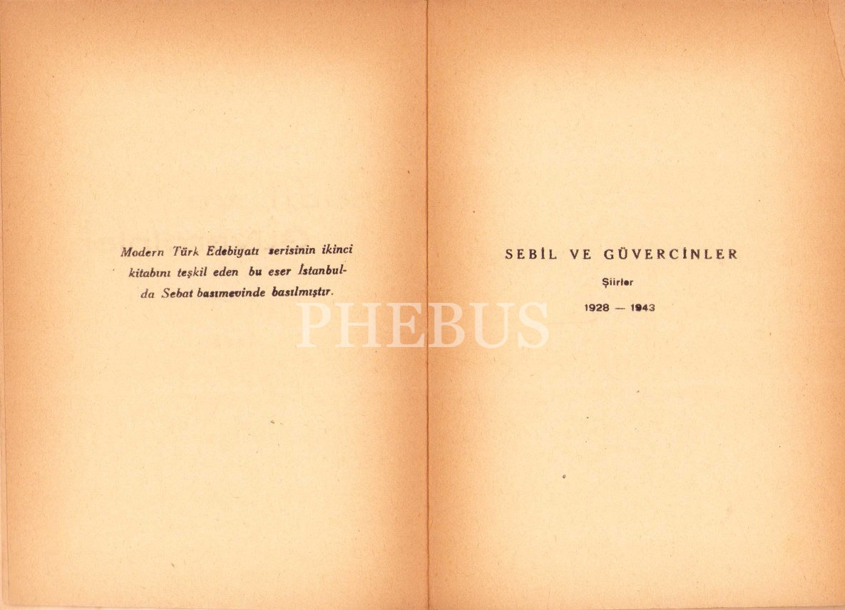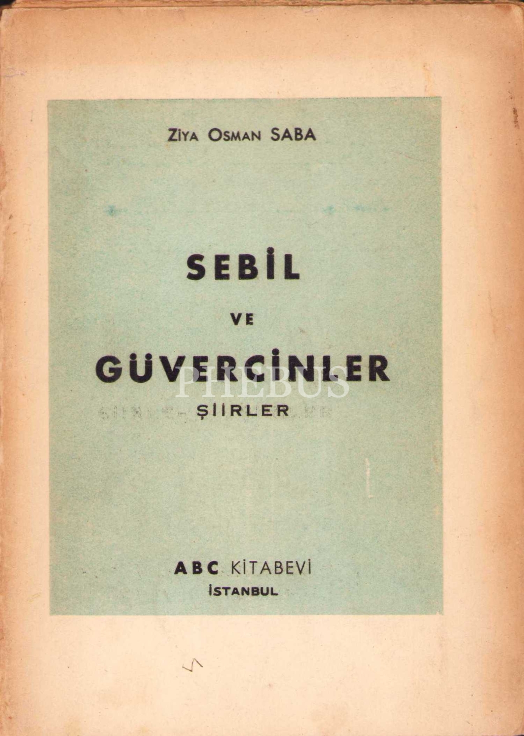 Ziya Osman Saba'nın İkinci Şiir Kitabı "Sebil ve Güvercinler"in İlk Baskısı, ABC Kitabevi 1943, 85 sayfa, sayfa araları ayrık haliyle, 13x18 cm