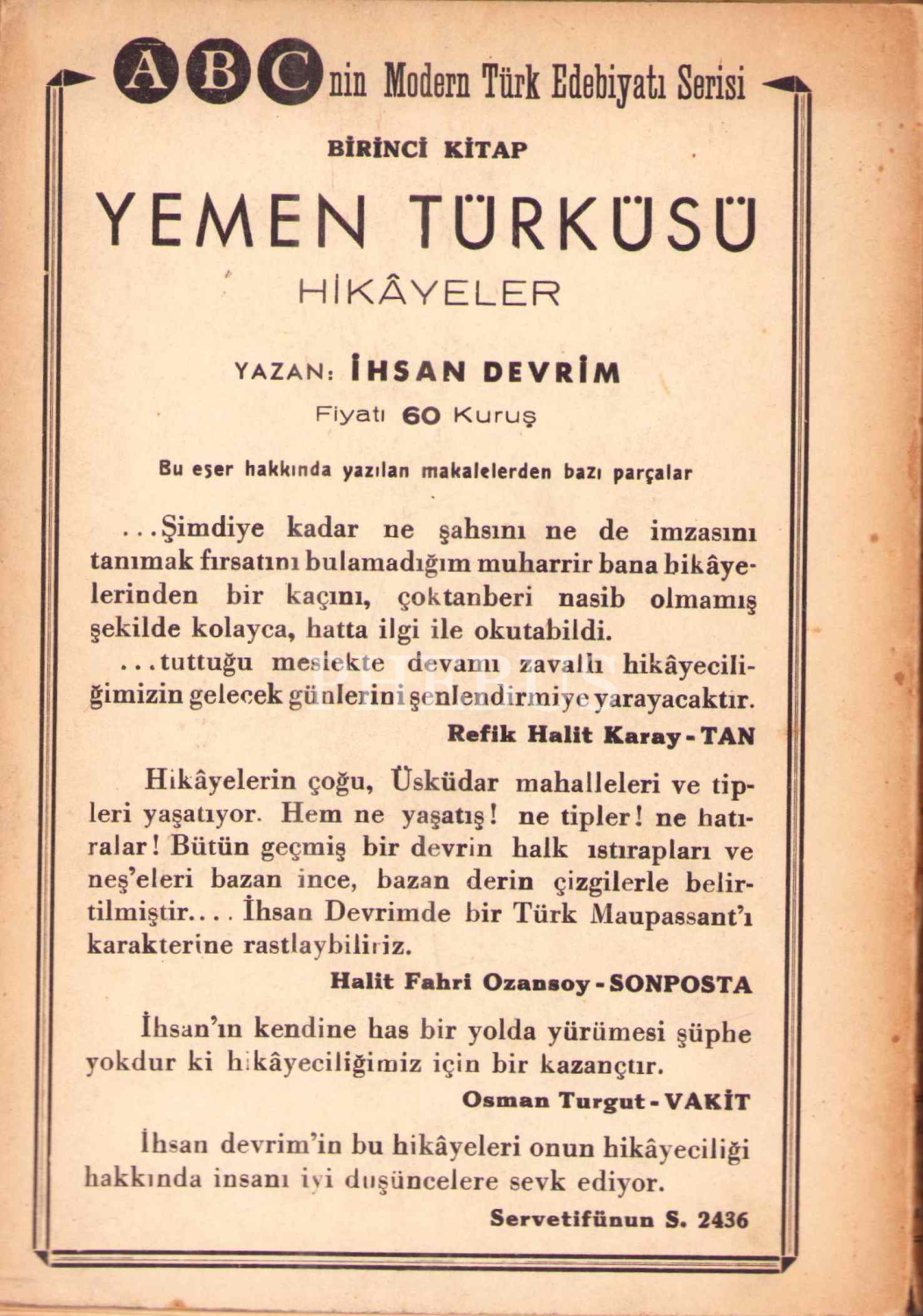 Hayatı boyunca "Yedi Meşaleciler" anlayışına bağlı kalan tek şair olan Ziya Osman Saba'nın ikinci şiir kitabıdır.