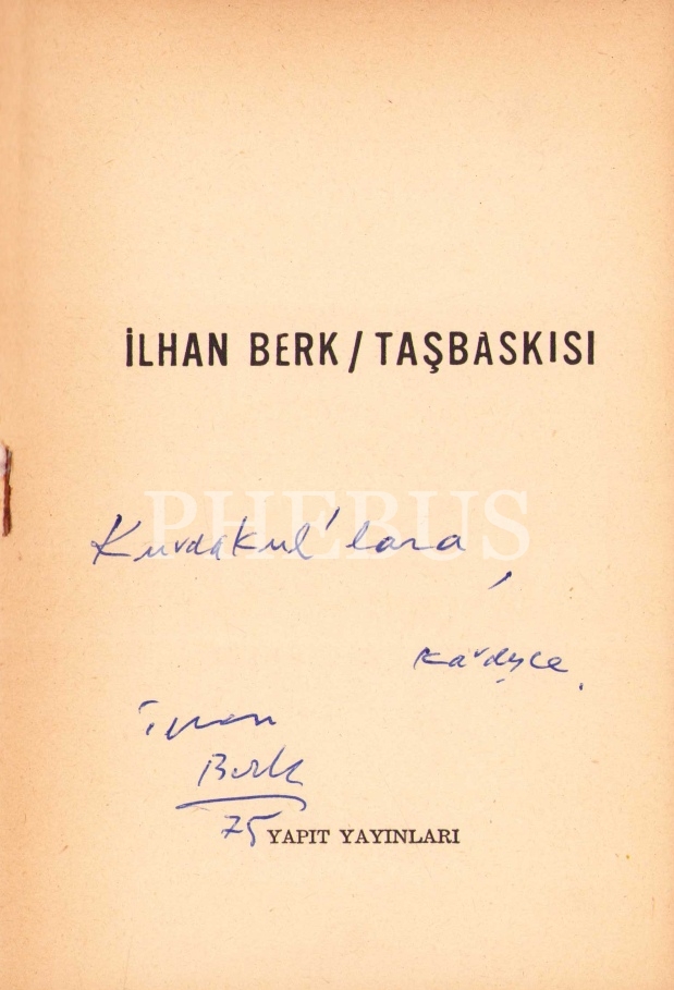 İlhan Berk'den İthaflı ve İmzalı "Taşbaskısı -Şiir" Kitabının İlk Baskısı, Yapıt Yayınları 1975, 32 sayfa, 13x20 cm