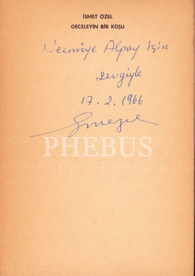 İsmet Özel'den Dilbilimci ve Çevirmen Necmiye Alpay'a İthaflı ve İmzalı İlk Şiir Kitabı "Geceleyin Bir Koşu" İlk Baskısı, Sergi Kitabevi 1966, 31 sayfa, 13x19 cm