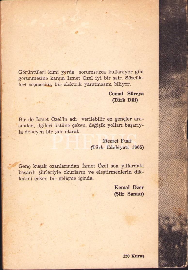 İthaf, "Necmiye Alpay için sevgiyle 17.2.1966" şeklindedir.